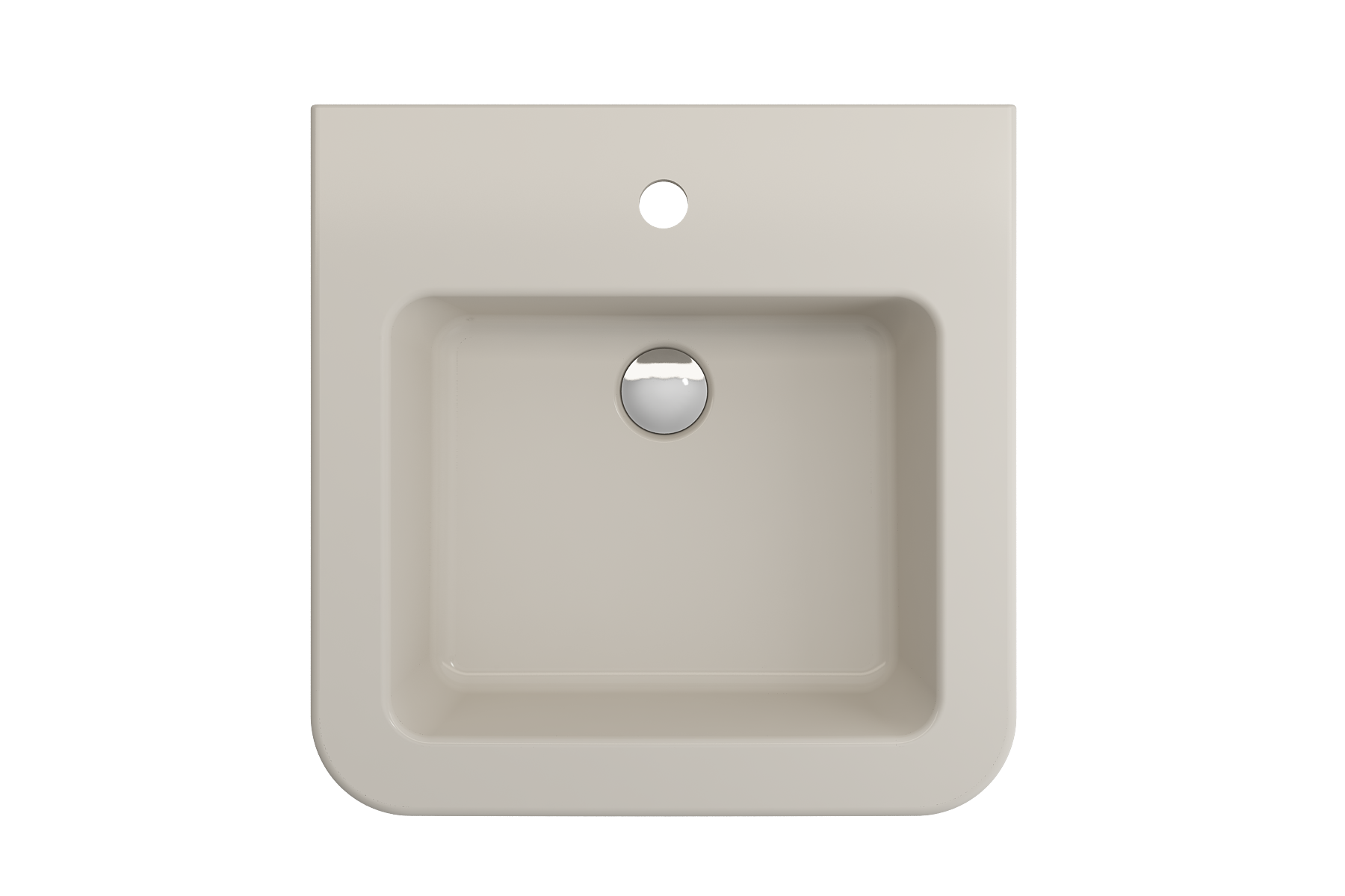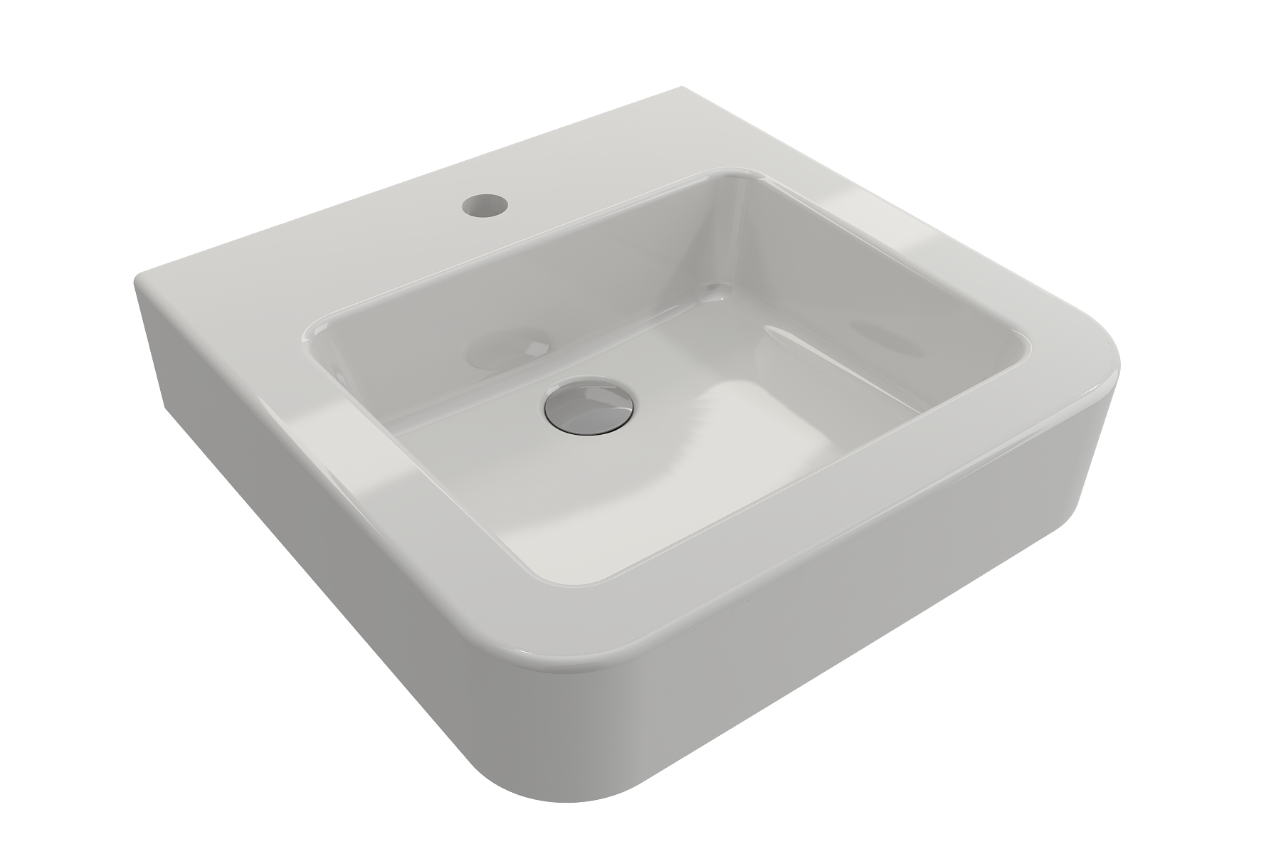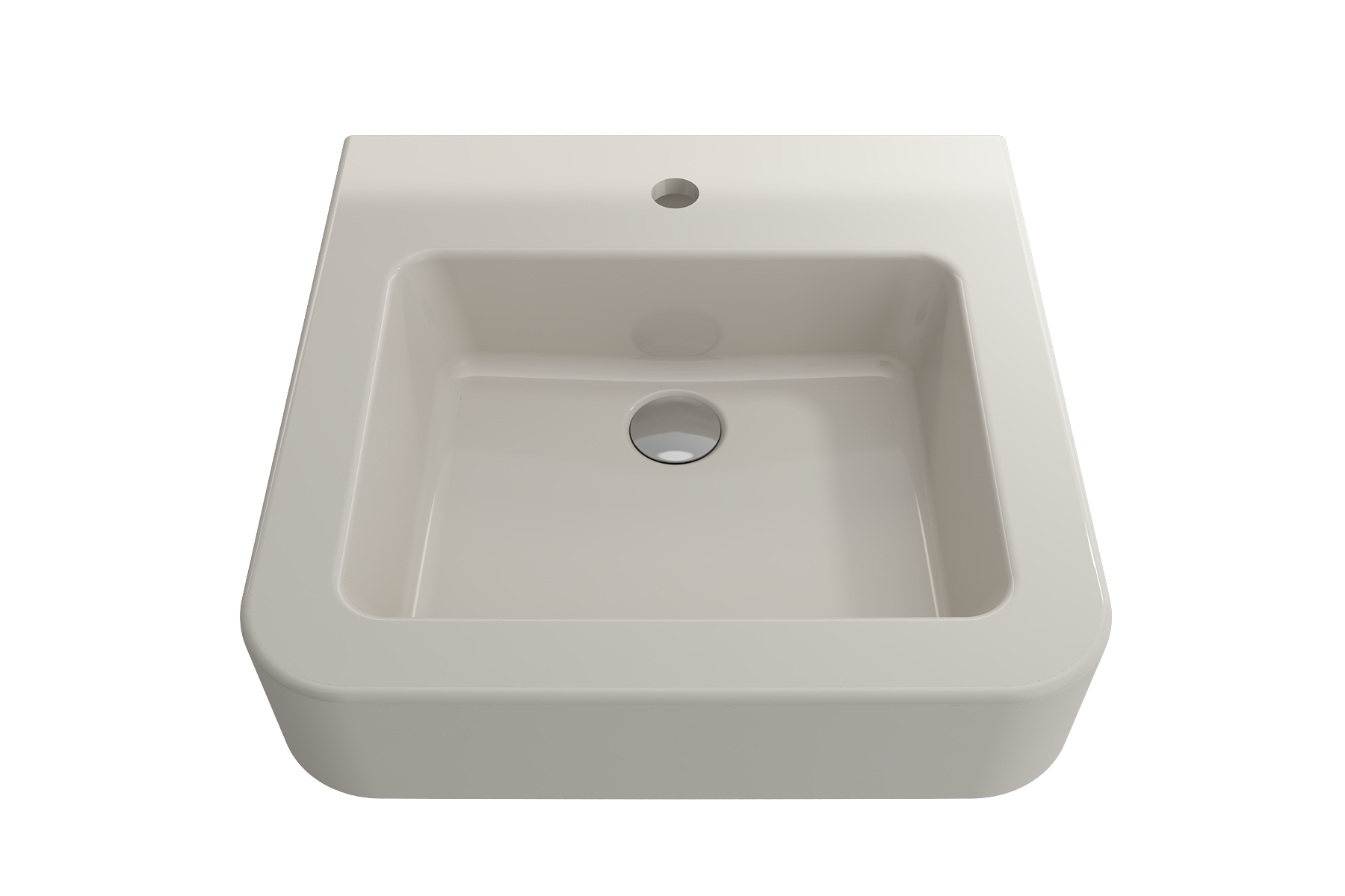 Bathroom sink with single-hole faucet setting. May be wall-hung or counterset.
