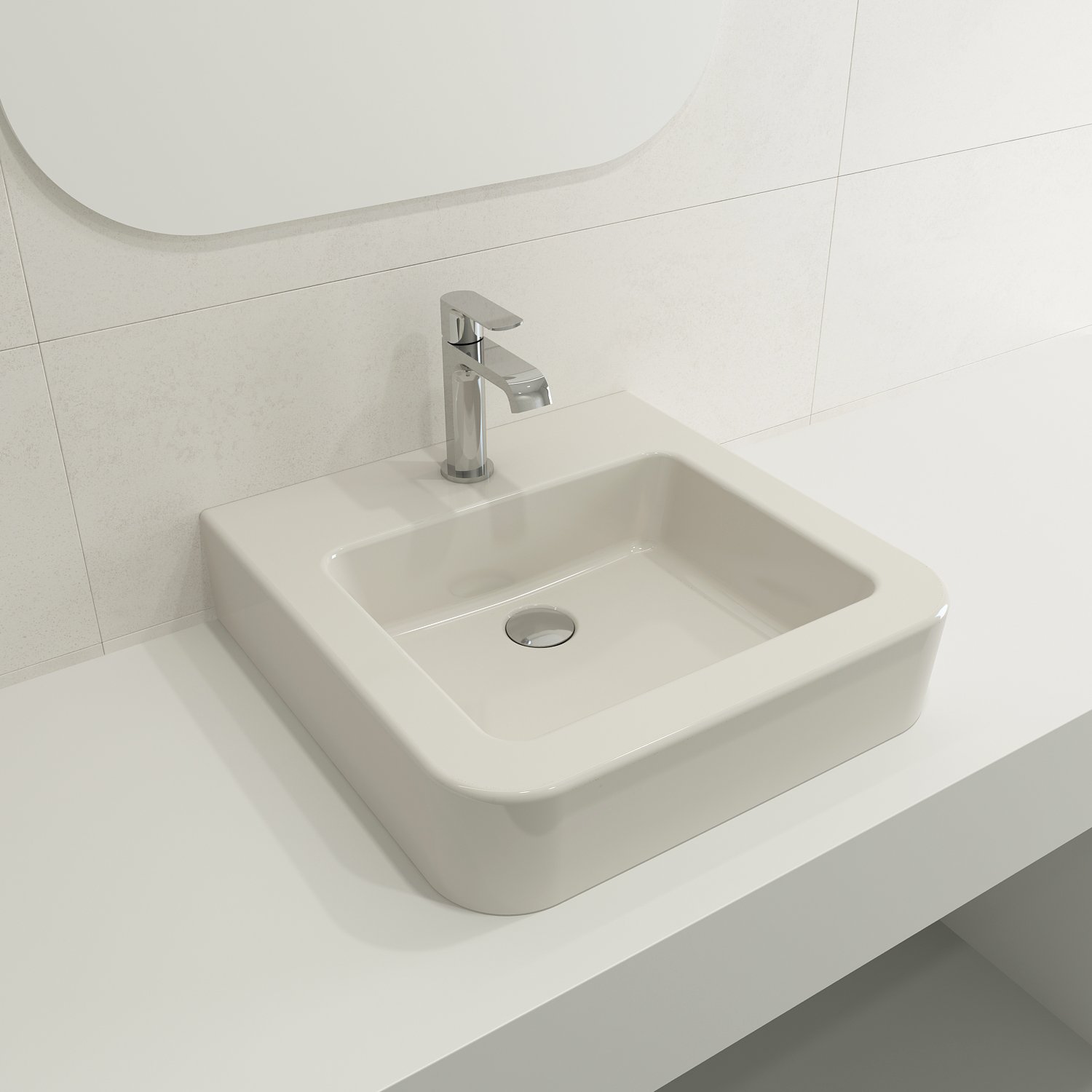 May be set on top of or semi-recessed into counter