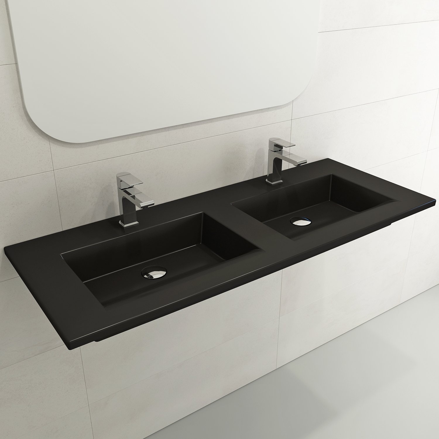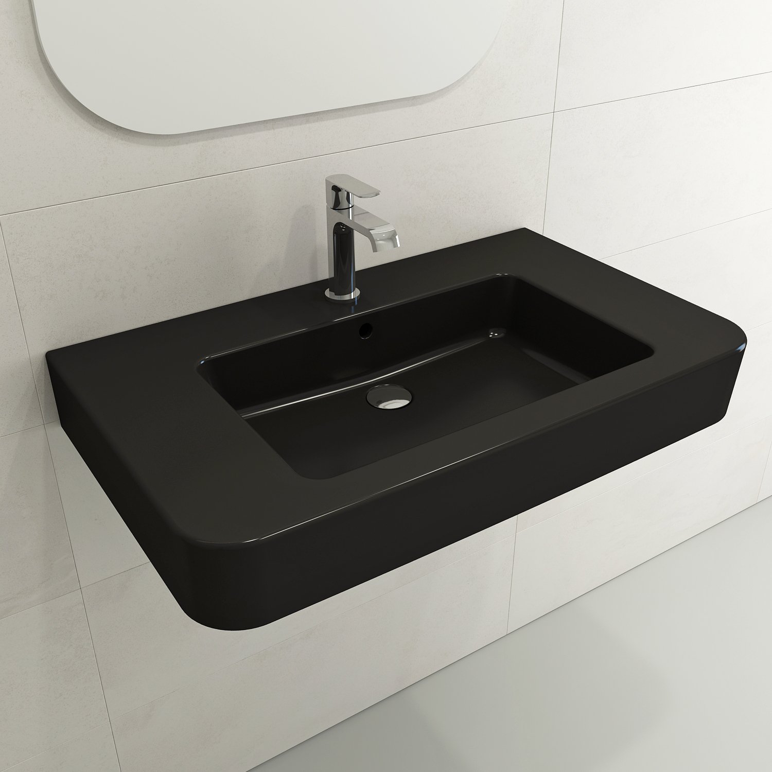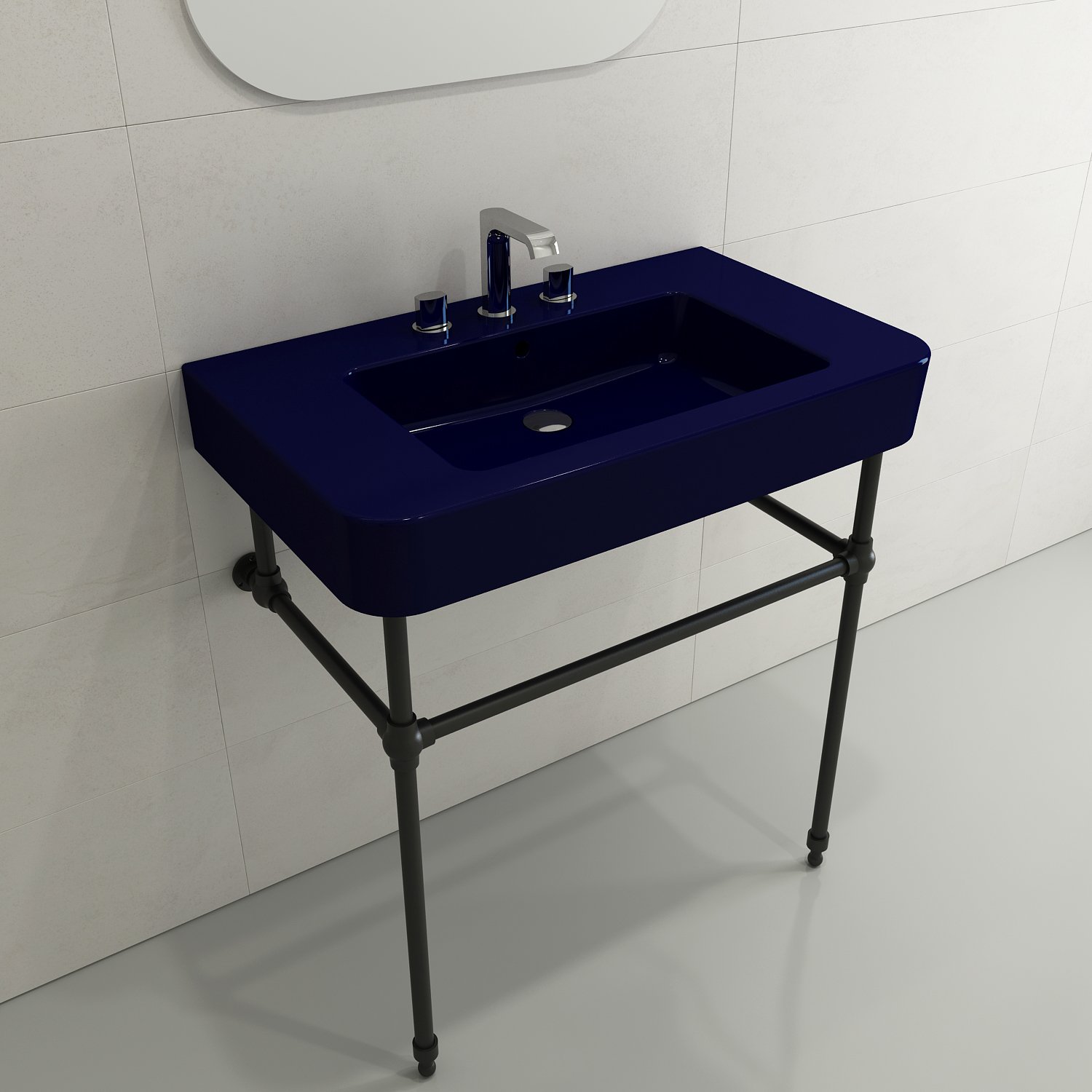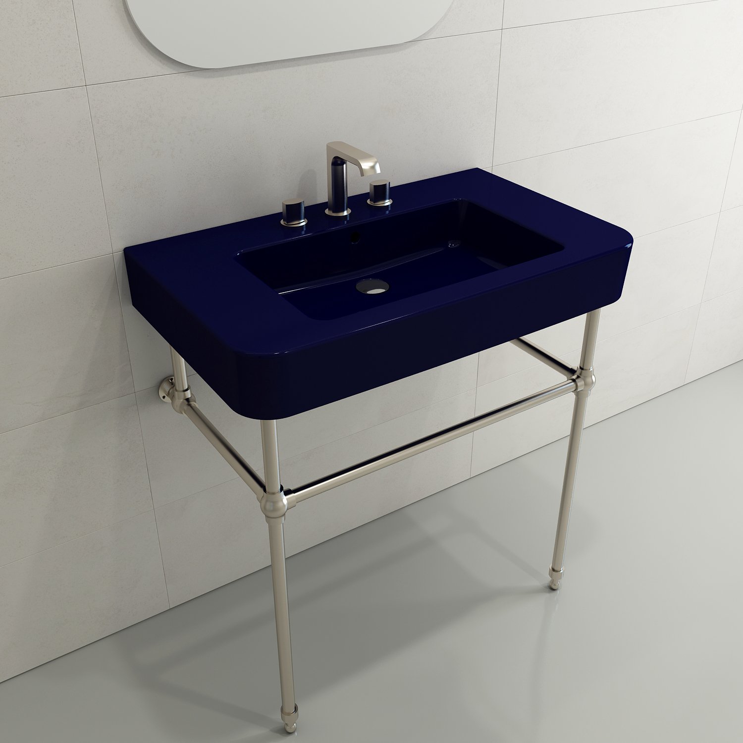 Bathroom sink with 3-hole (8in.) faucet setting. May be wall-hung, used with metal console legs, or counterset.