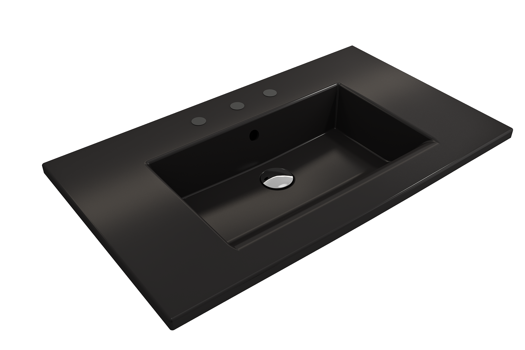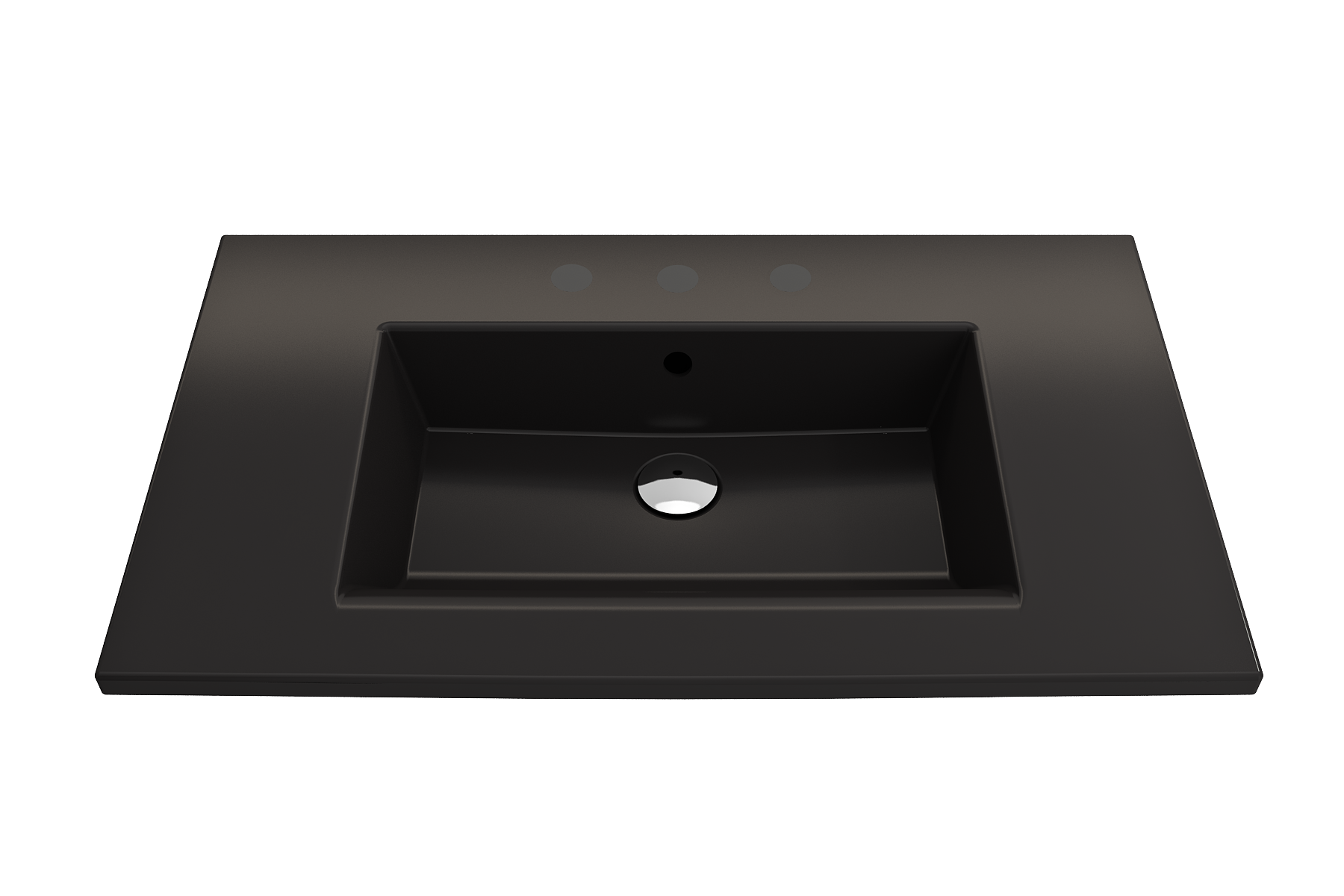 Bathroom sink with 3-hole (8in.) faucet setting. May be wall-hung, used with metal console legs, or semi-recessed into the counter. With overflow.
