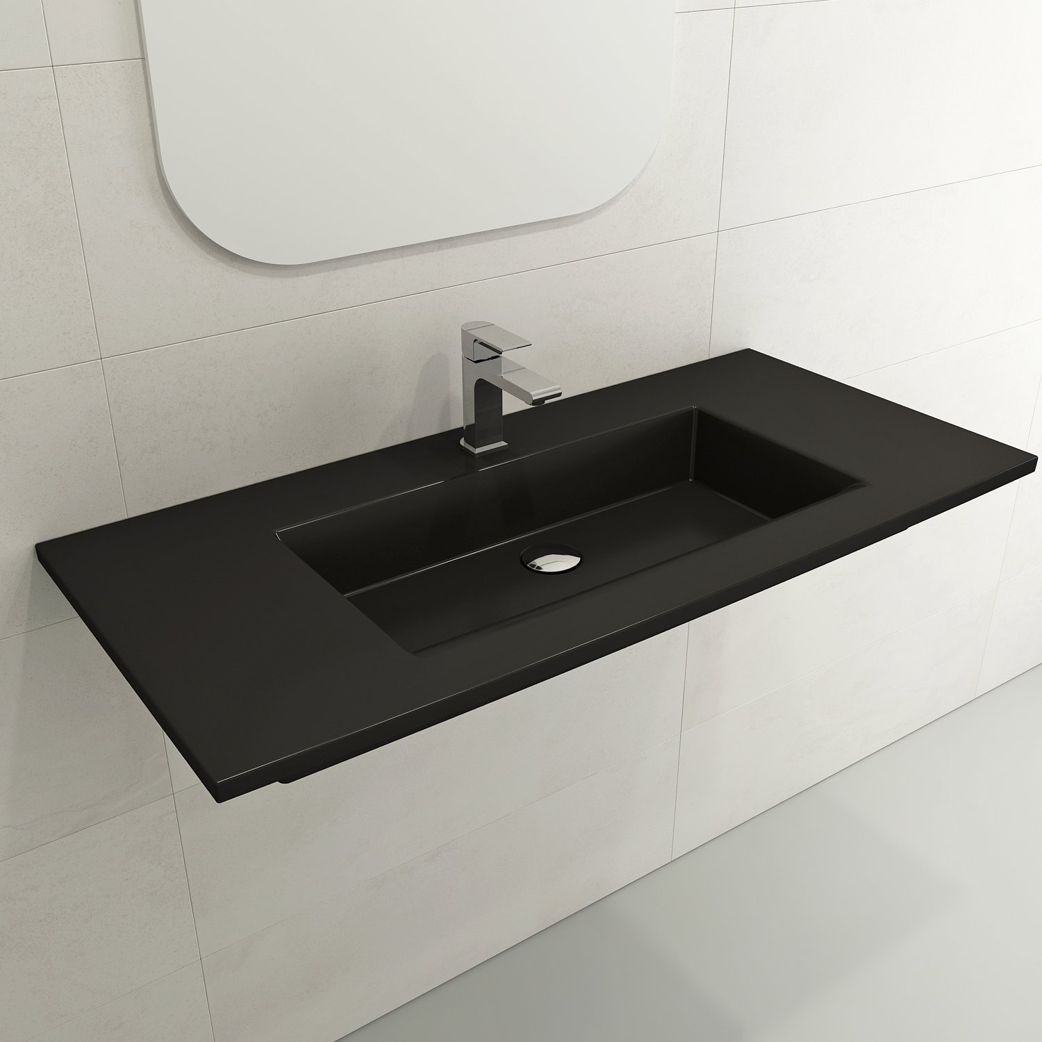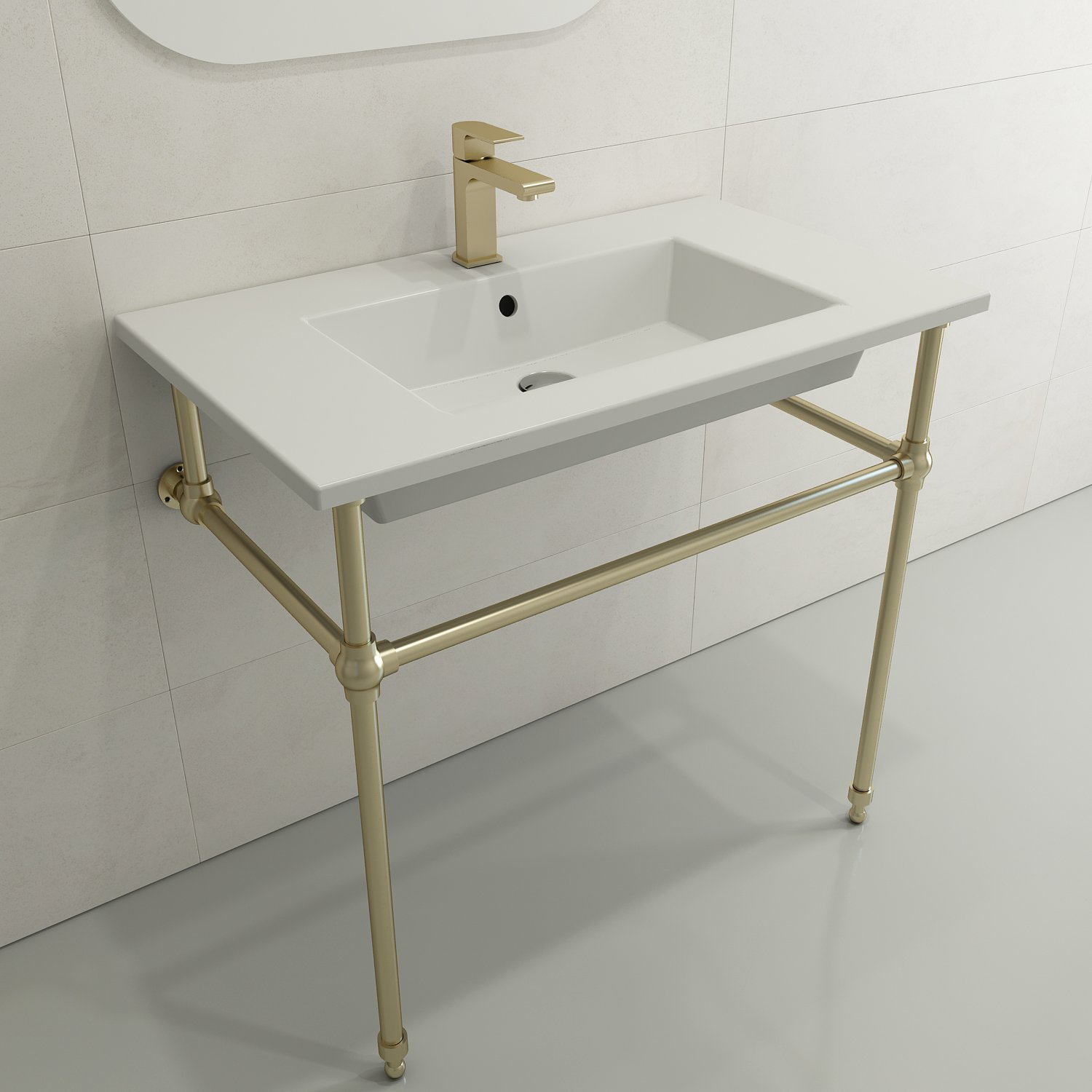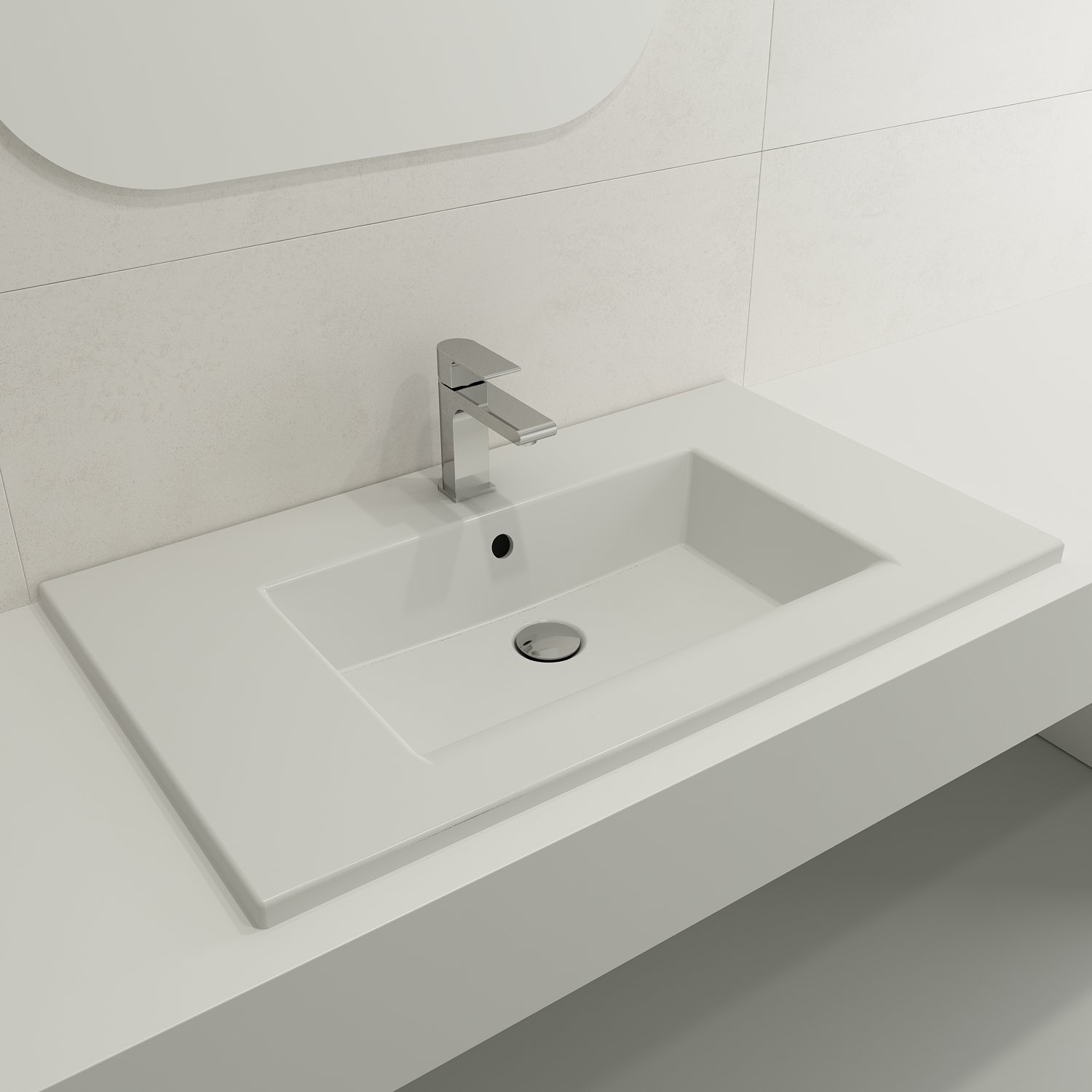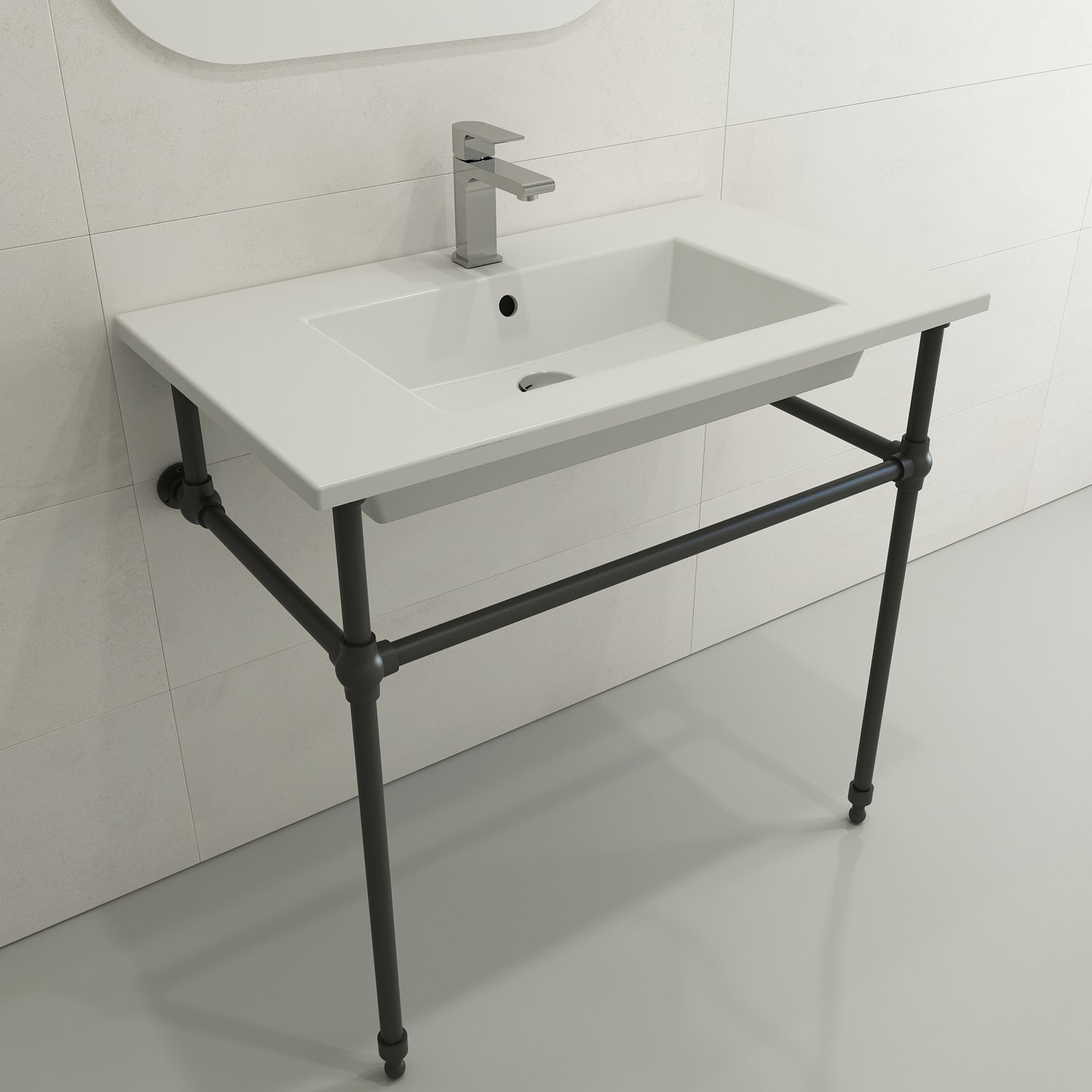Bathroom sink with single-hole faucet setting. May be wall-hung, used with metal console legs, or semi-recessed into the counter. With overflow.
