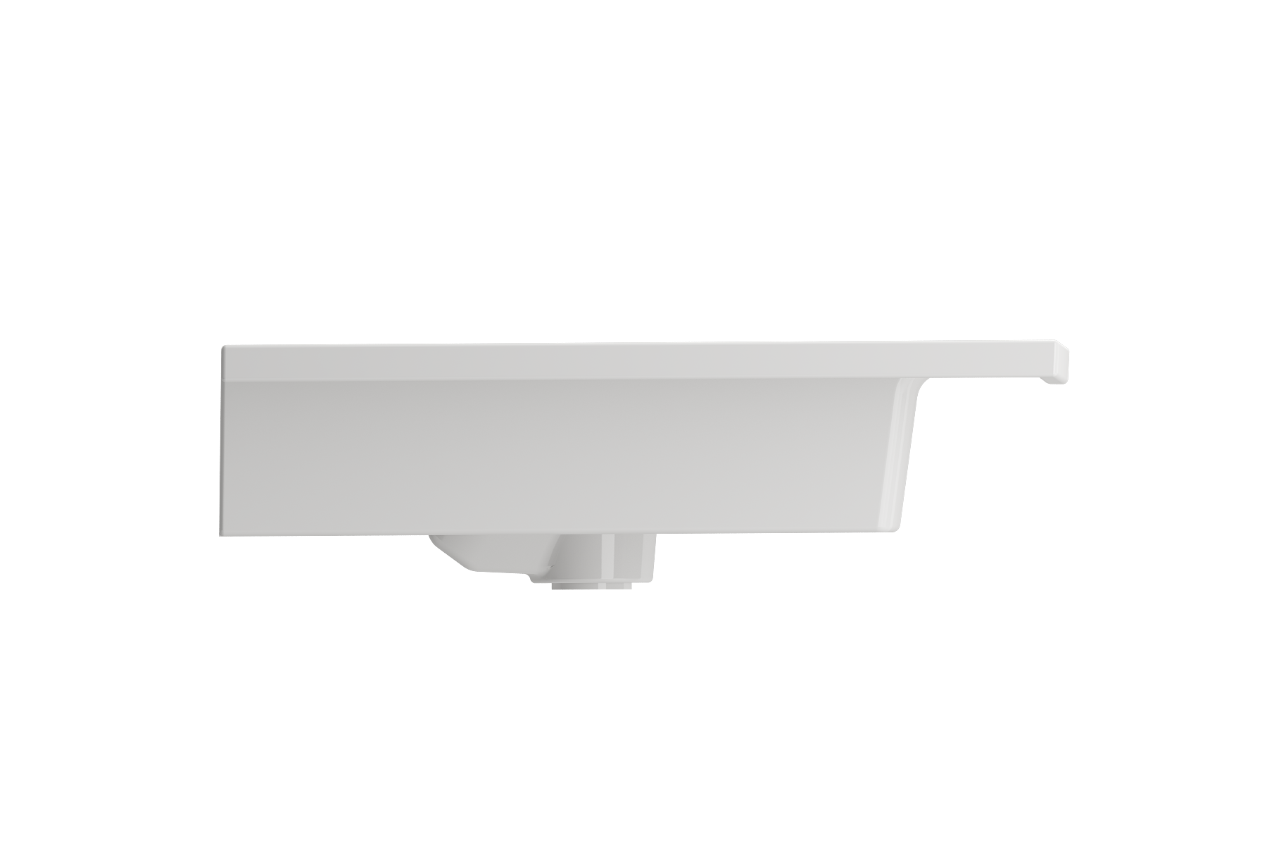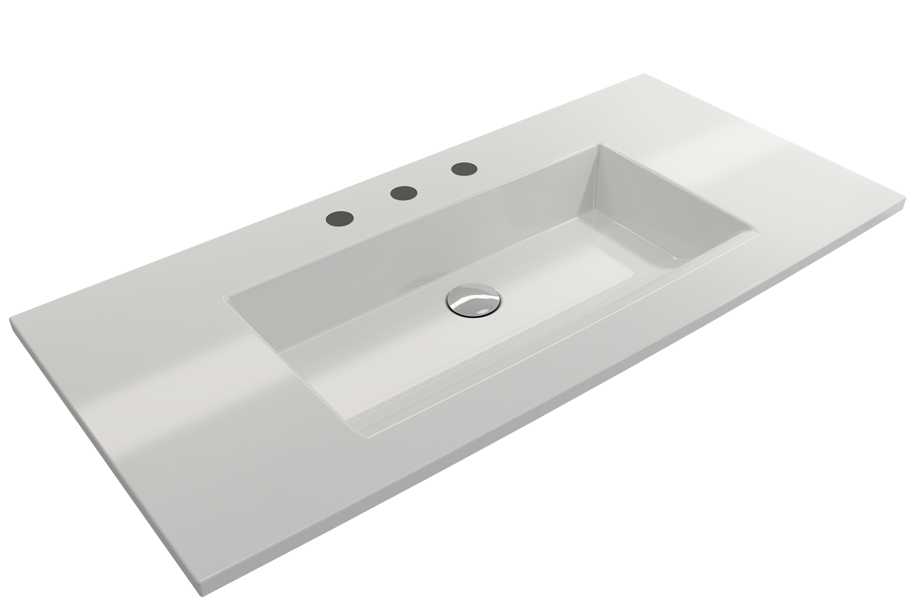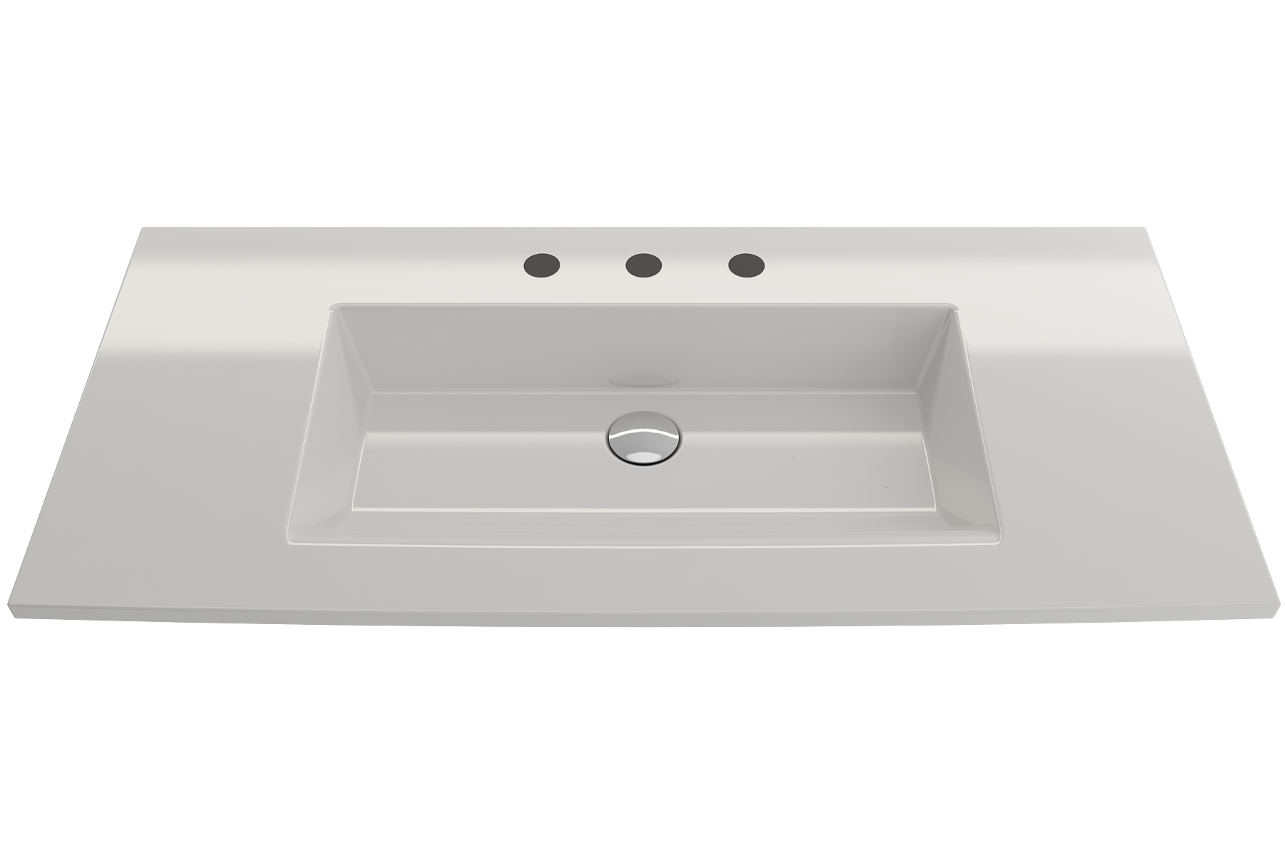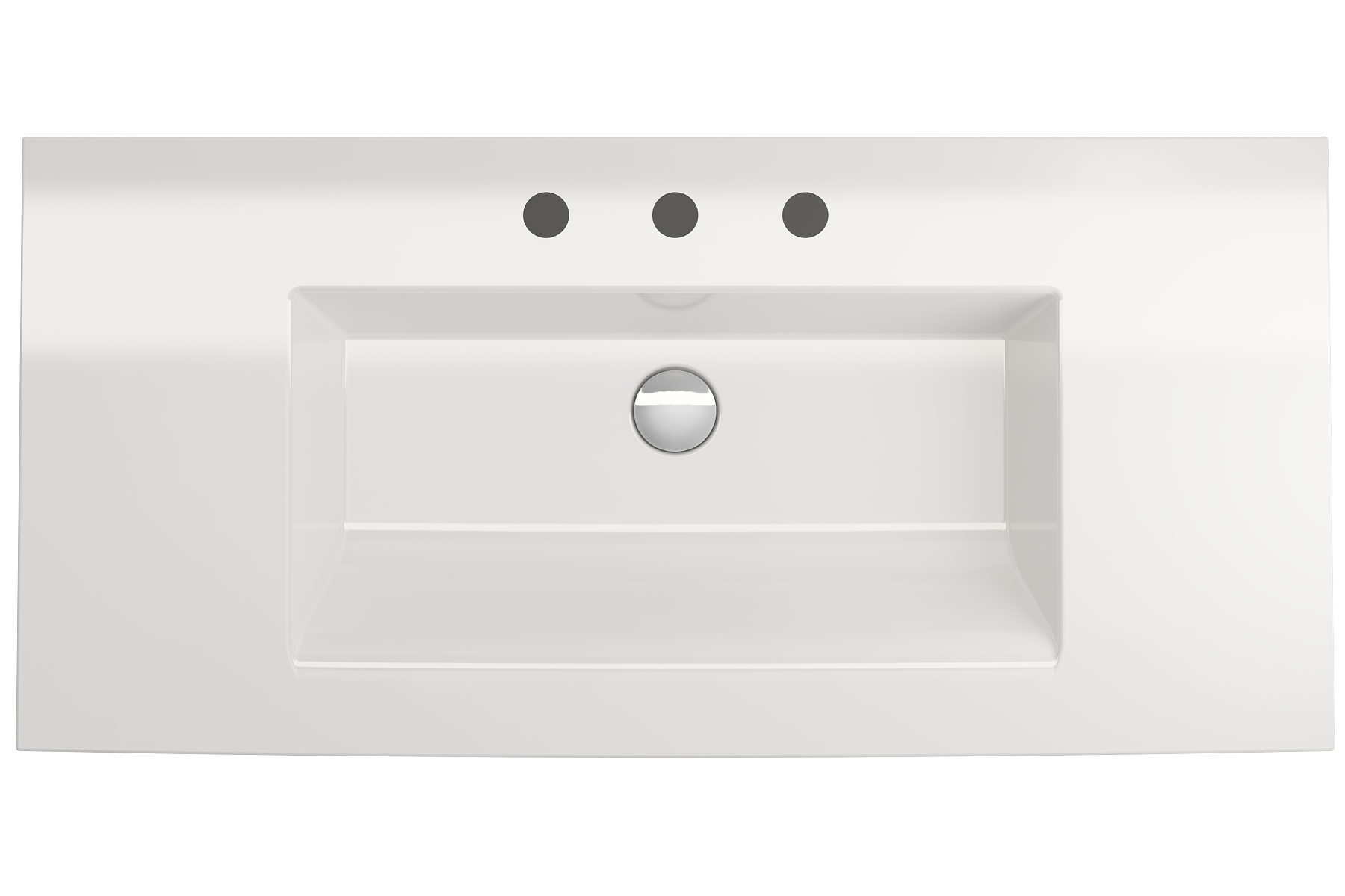 Bathroom sink with 3-hole (8in.) faucet setting. May be wall-hung, used with metal console legs, or semi-recessed into the counter. With overflow.