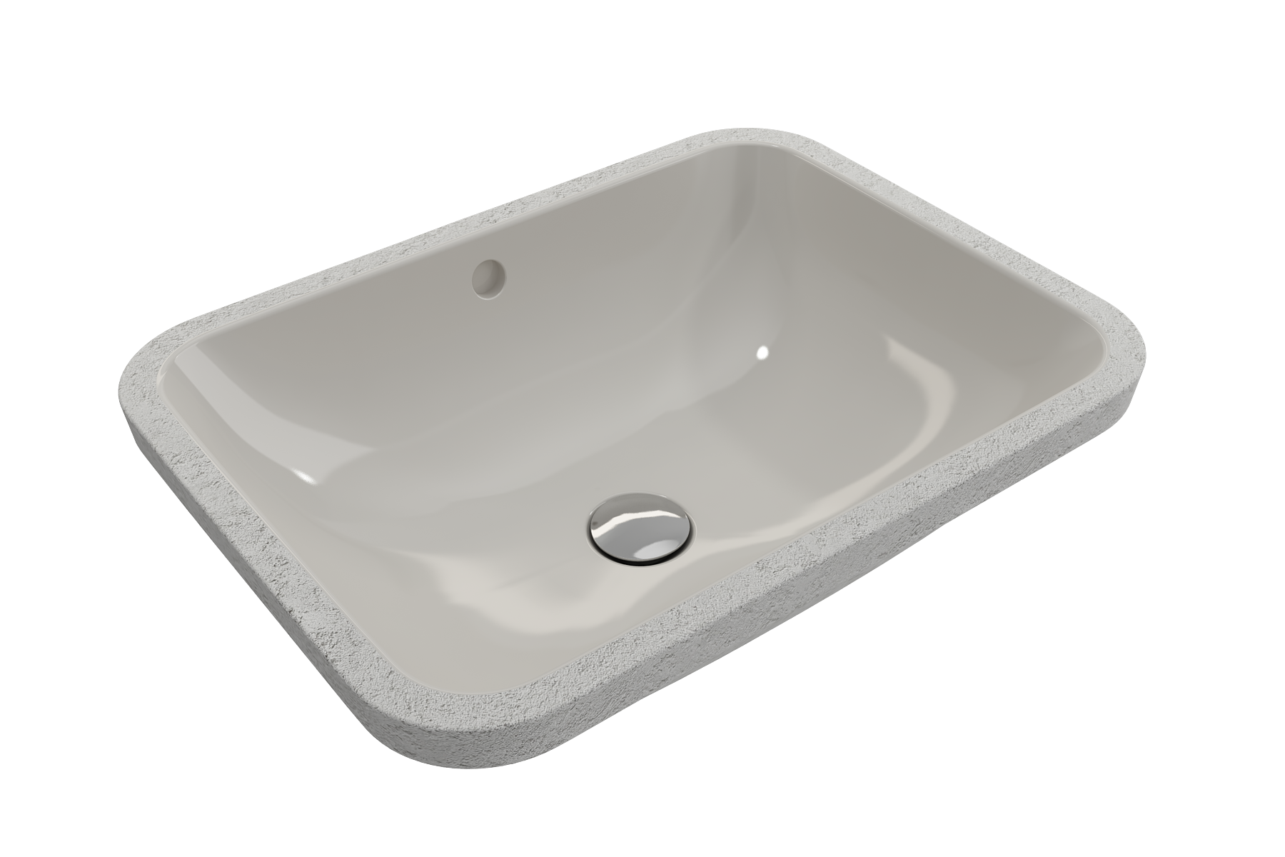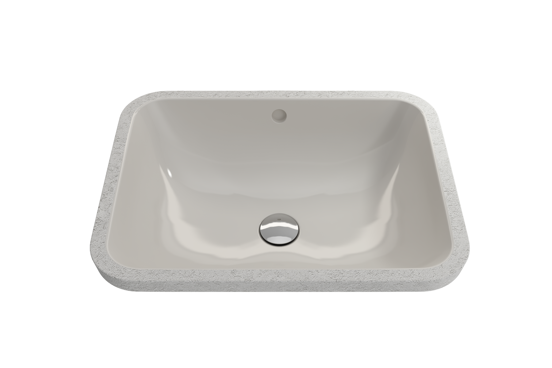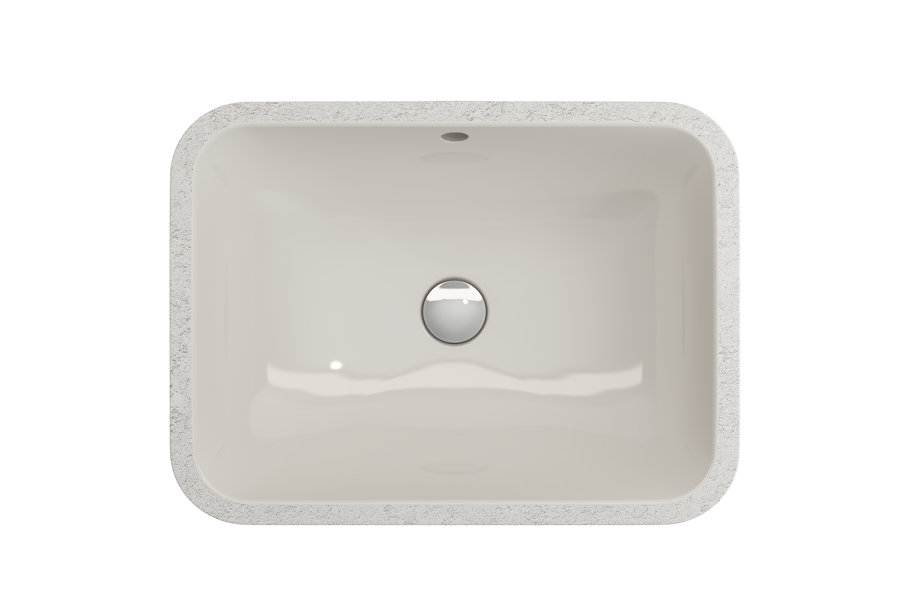 Undermount bathroom sink with overflow made of fine fireclay with sophisticated square basin.