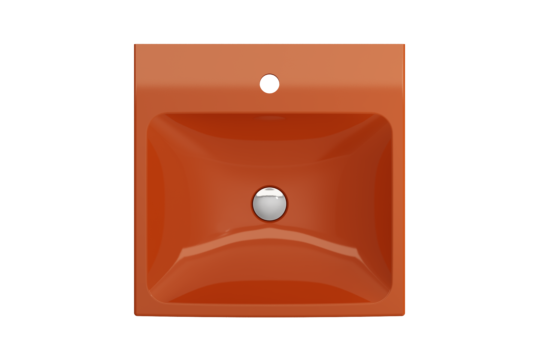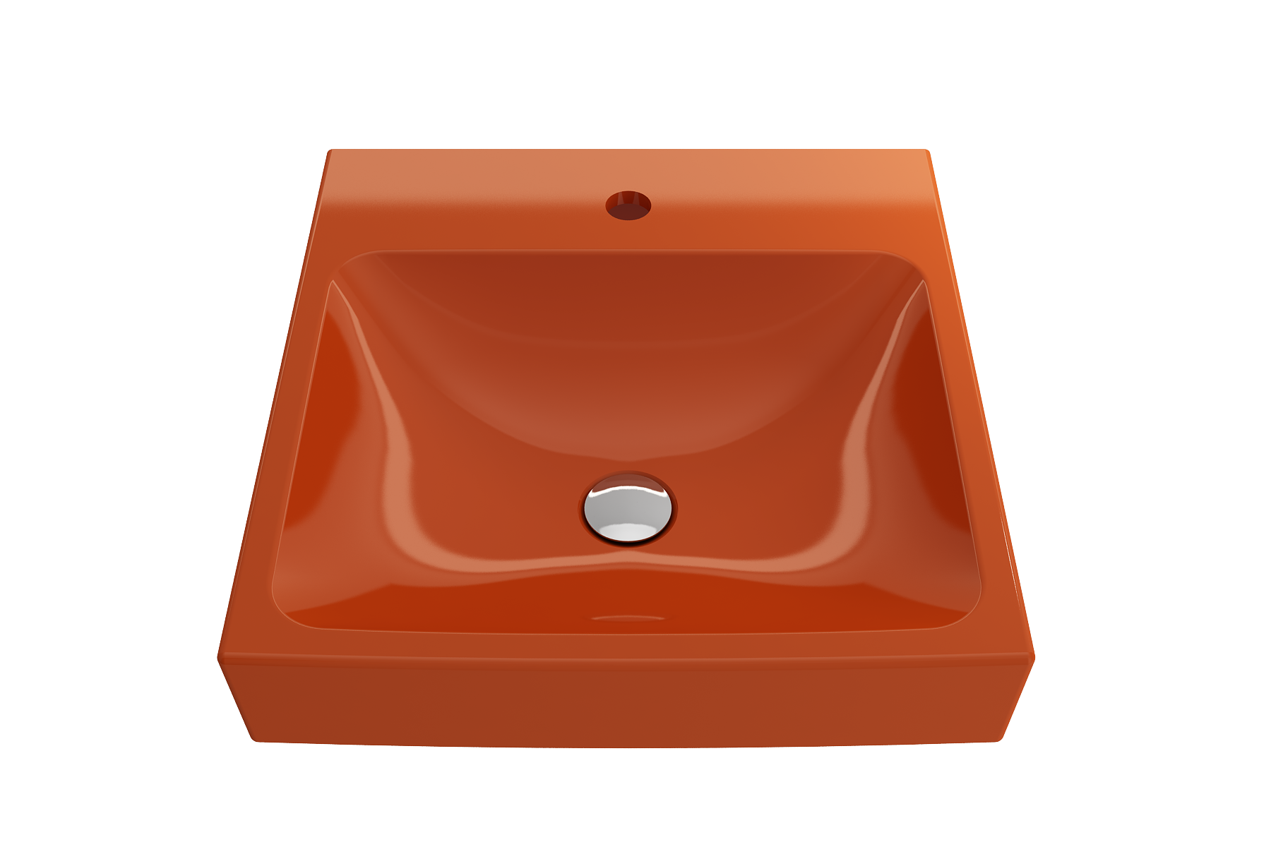 Bathroom sink with single-hole faucet setting. May be wall-hung, used with metal console legs, or semi-recessed into the counter.