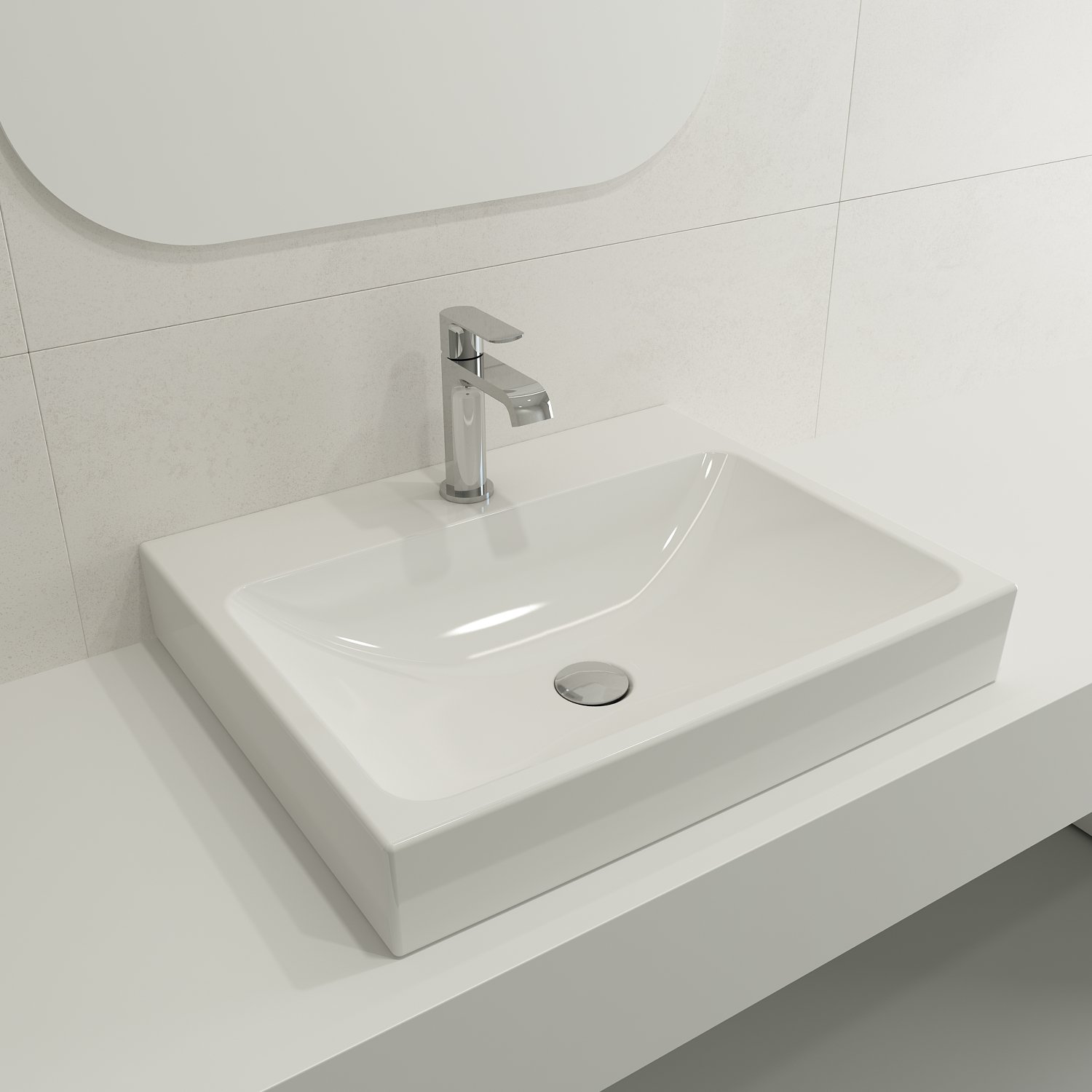 May be set on top of or semi-recessed into counter