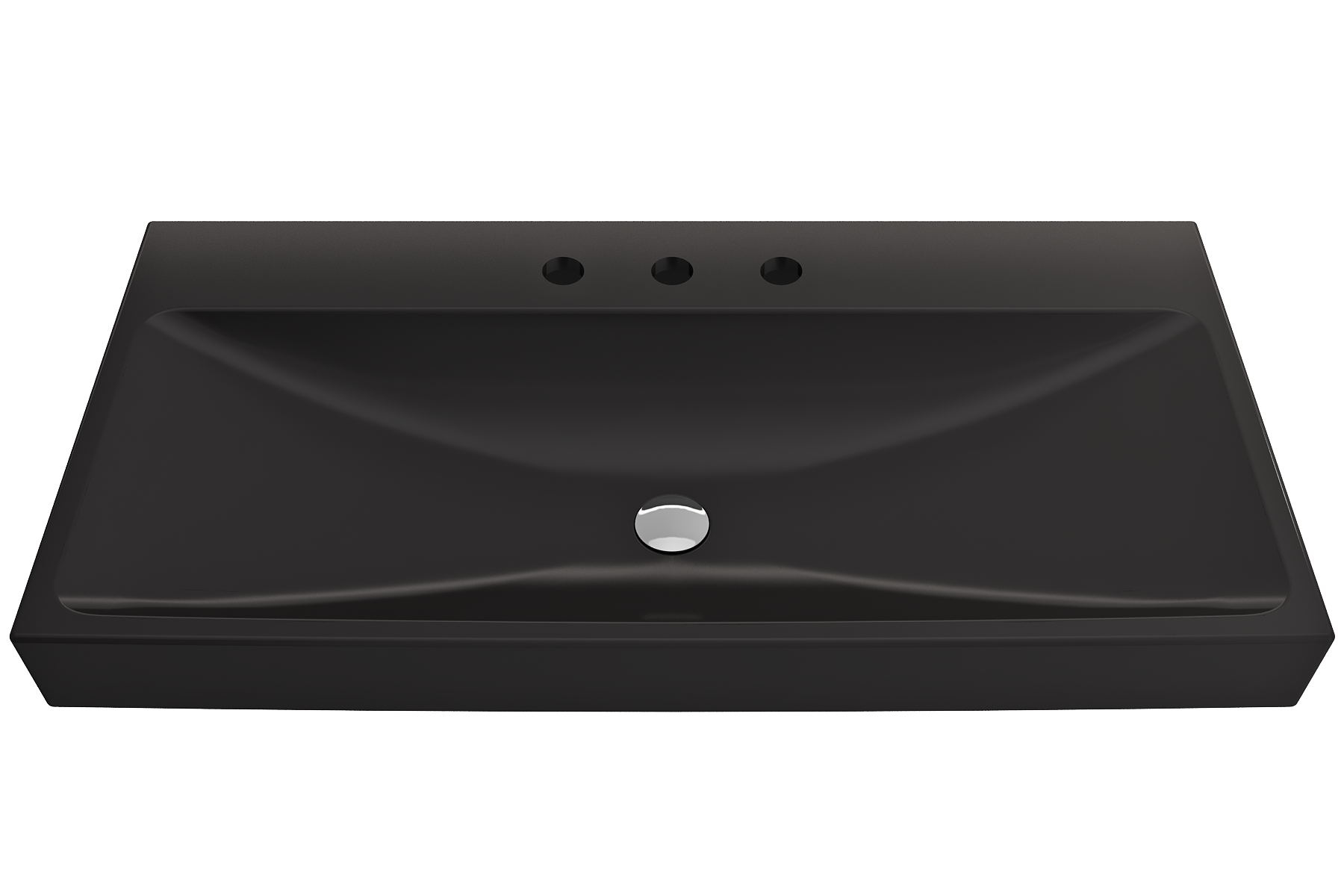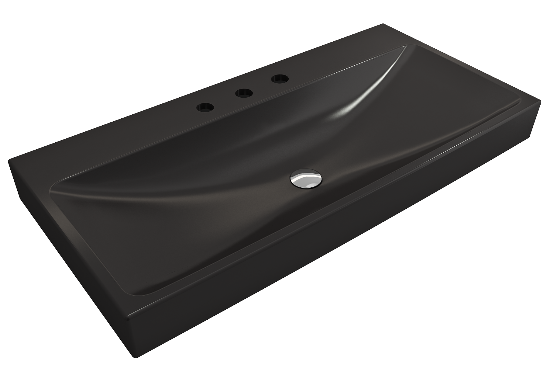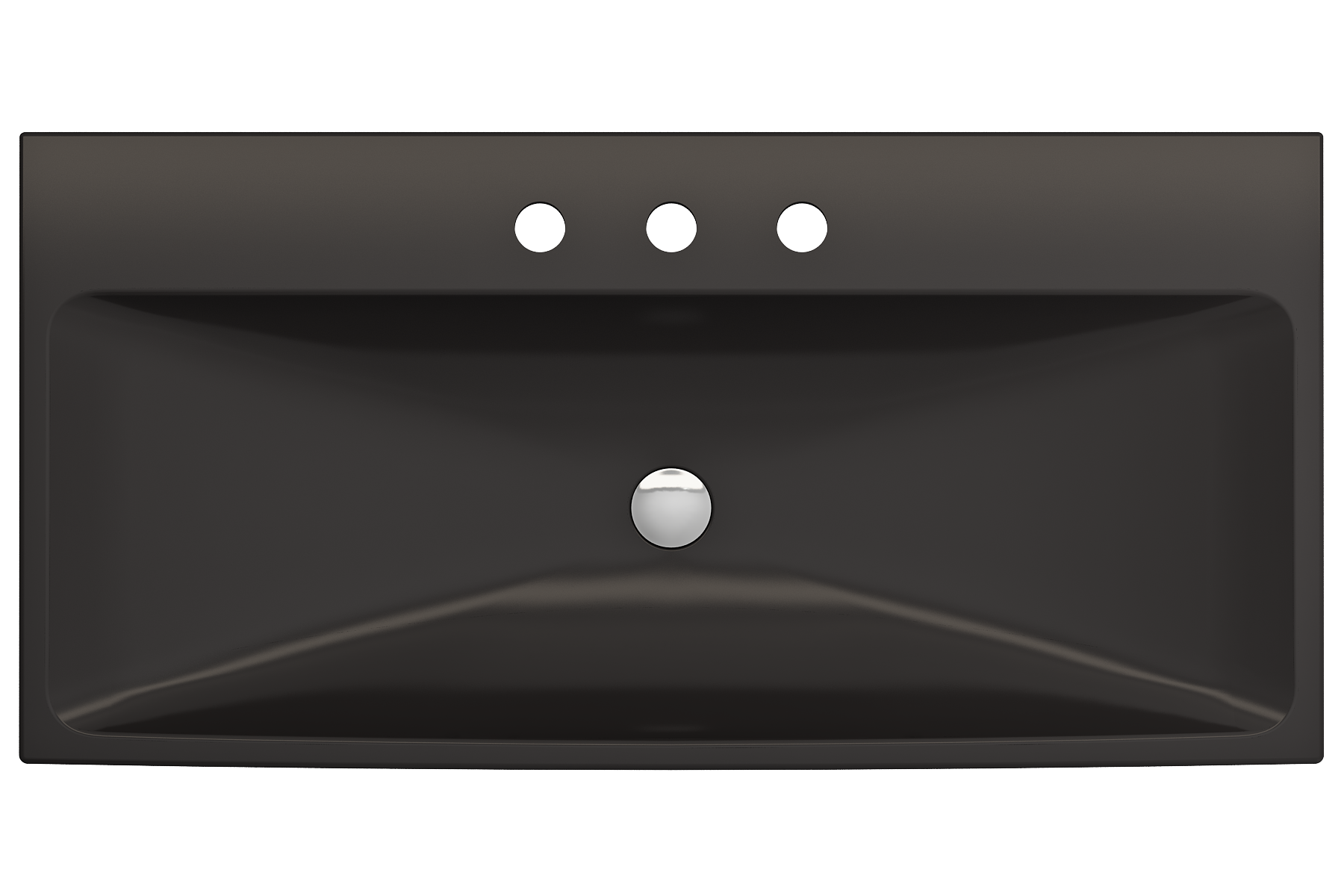 Bathroom sink with 3-hole (8in.) faucet setting. May be wall-hung, used with metal console legs, or semi-recessed into the counter.