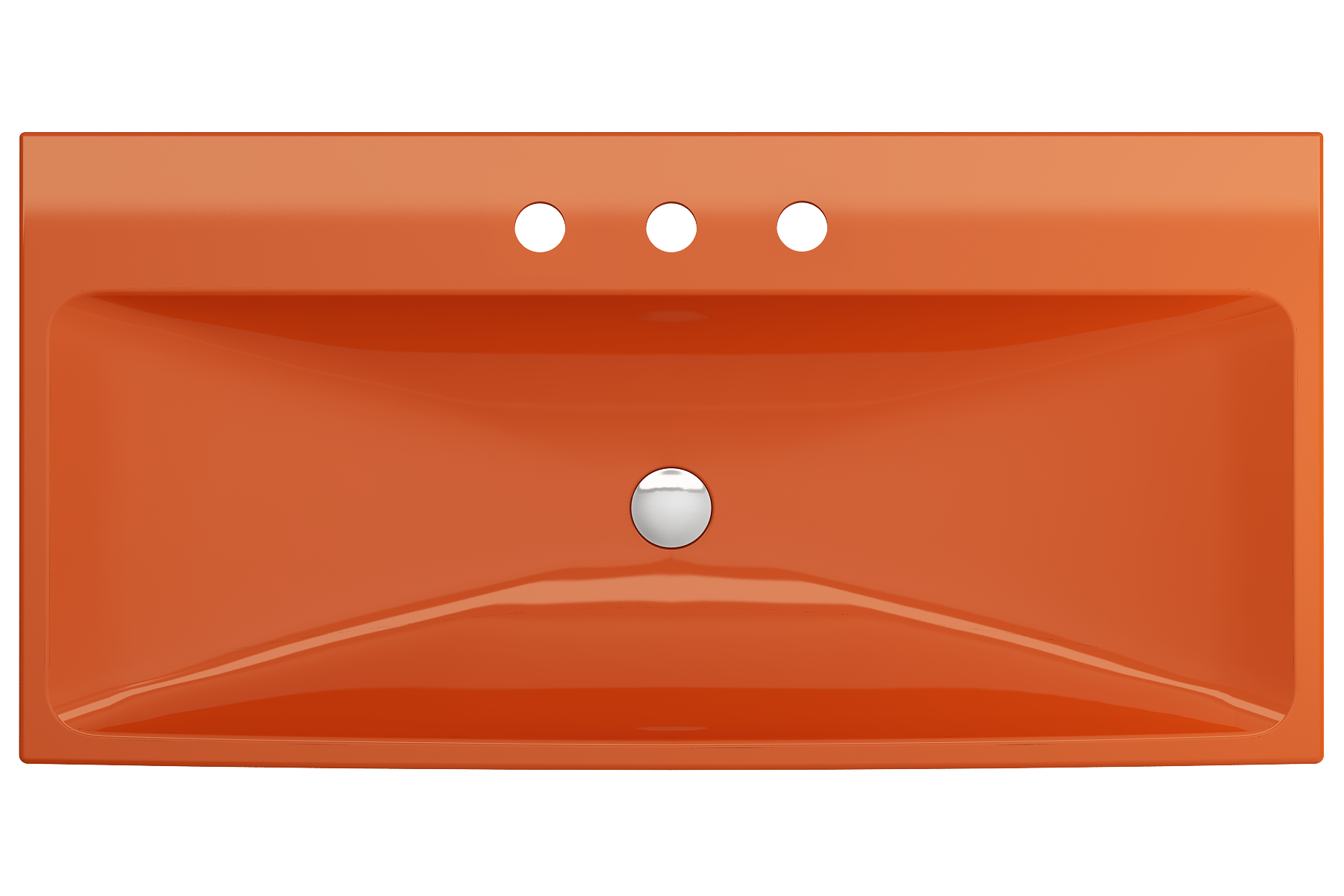 Bathroom sink with 3-hole (8in.) faucet setting. May be wall-hung, used with metal console legs, or semi-recessed into the counter.