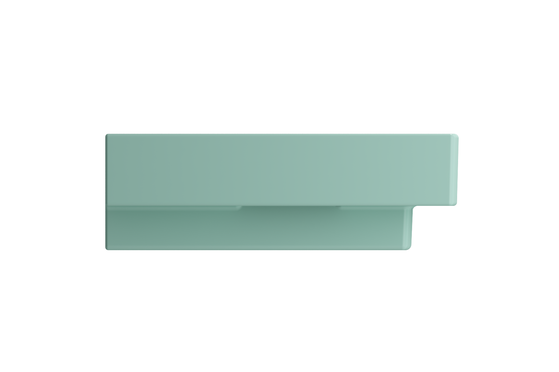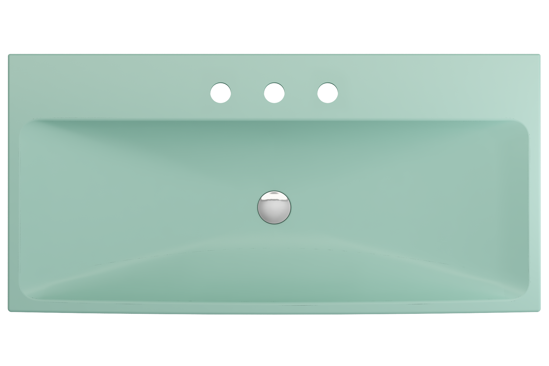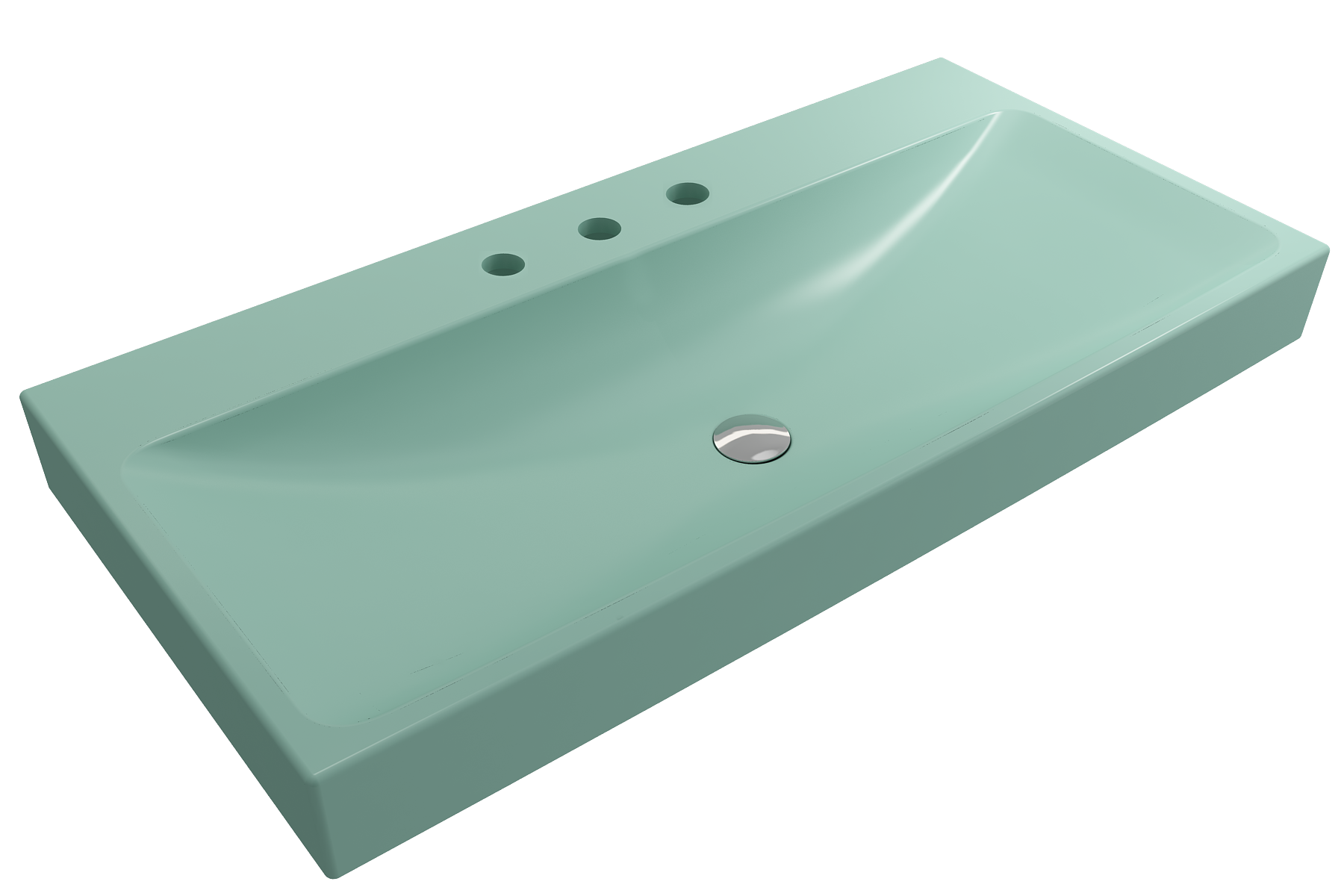Bathroom sink with 3-hole (8in.) faucet setting. May be wall-hung, used with metal console legs, or semi-recessed into the counter.