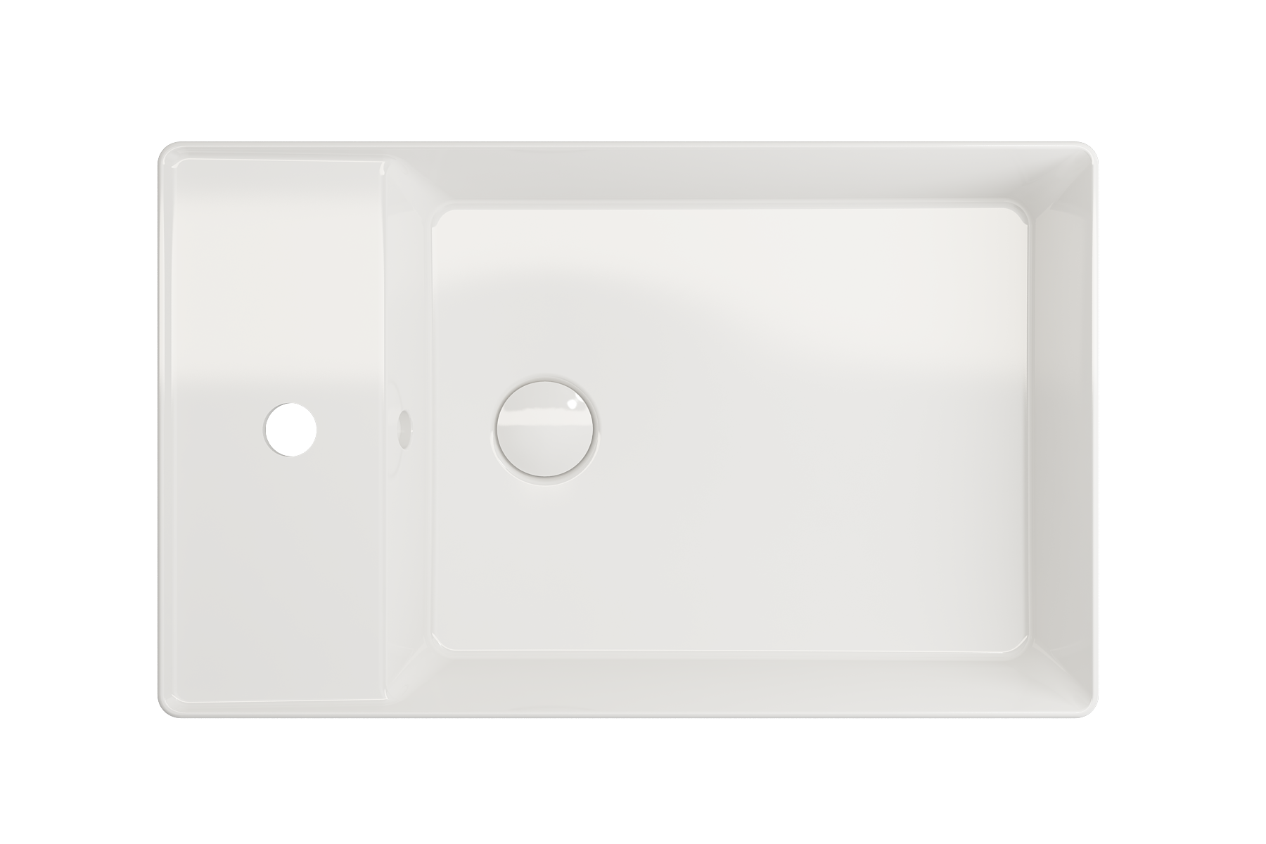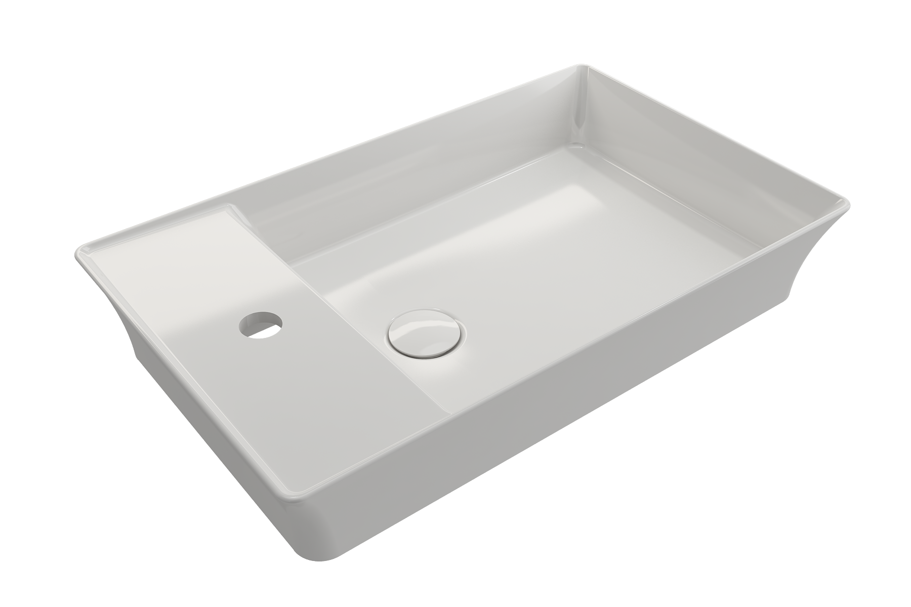 Fine fireclay bathroom vessel sink with single-hole faucet setting and overflow. Features delicately carving outside edges.