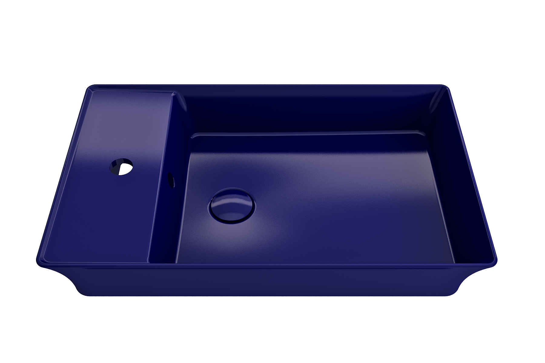 Fine fireclay bathroom vessel sink with single-hole faucet setting and overflow. Features delicately carving outside edges.