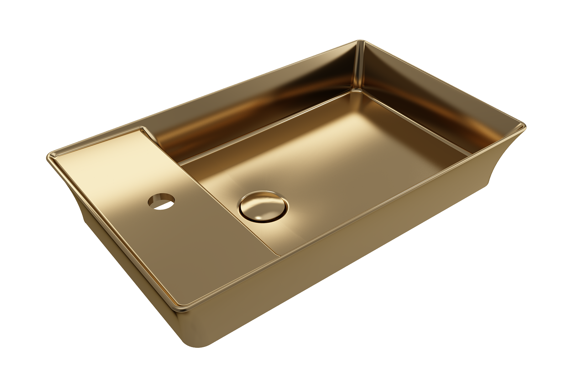 Fine fireclay bathroom vessel sink with single-hole faucet setting and overflow. Features delicately carving outside edges.