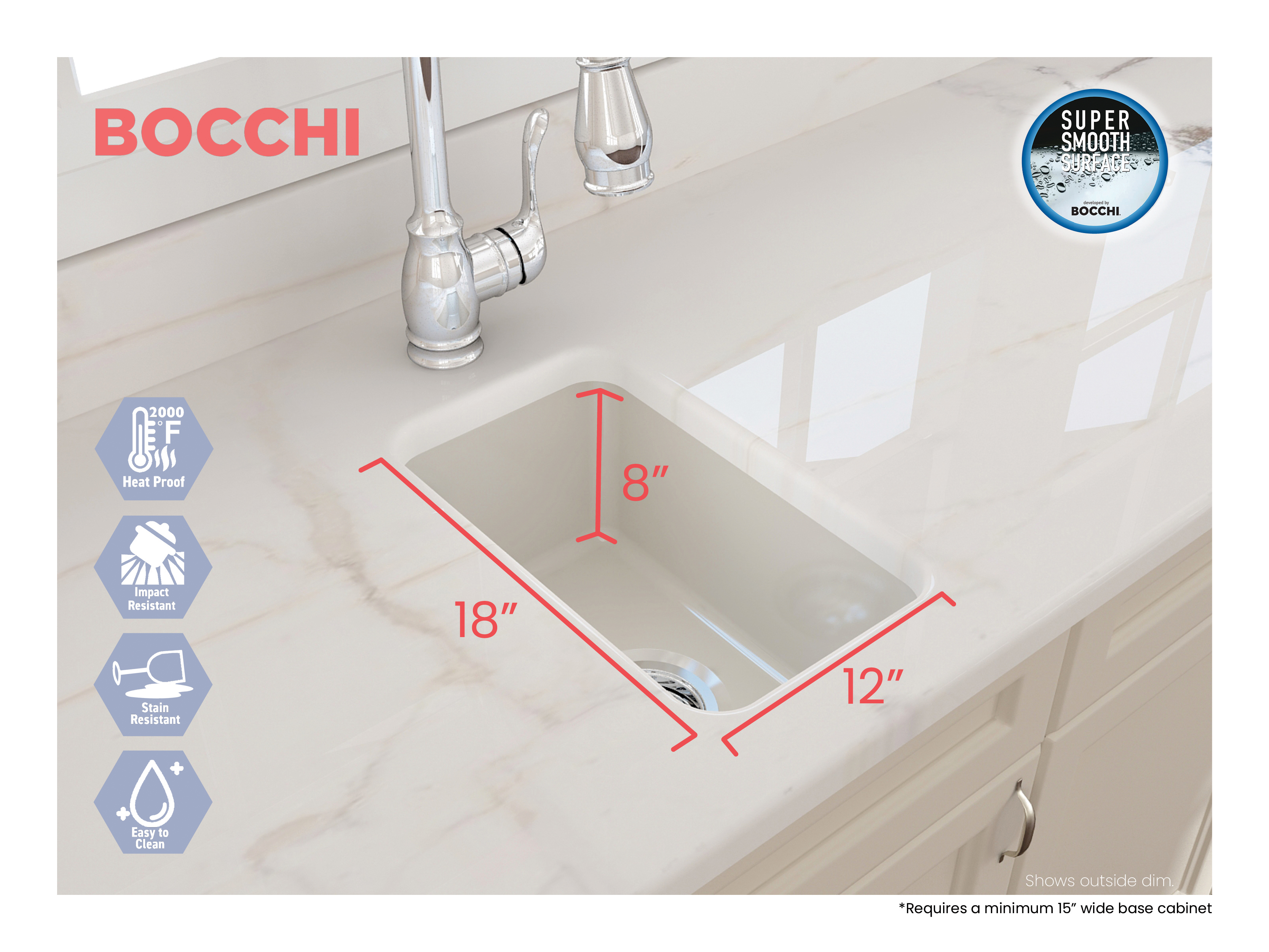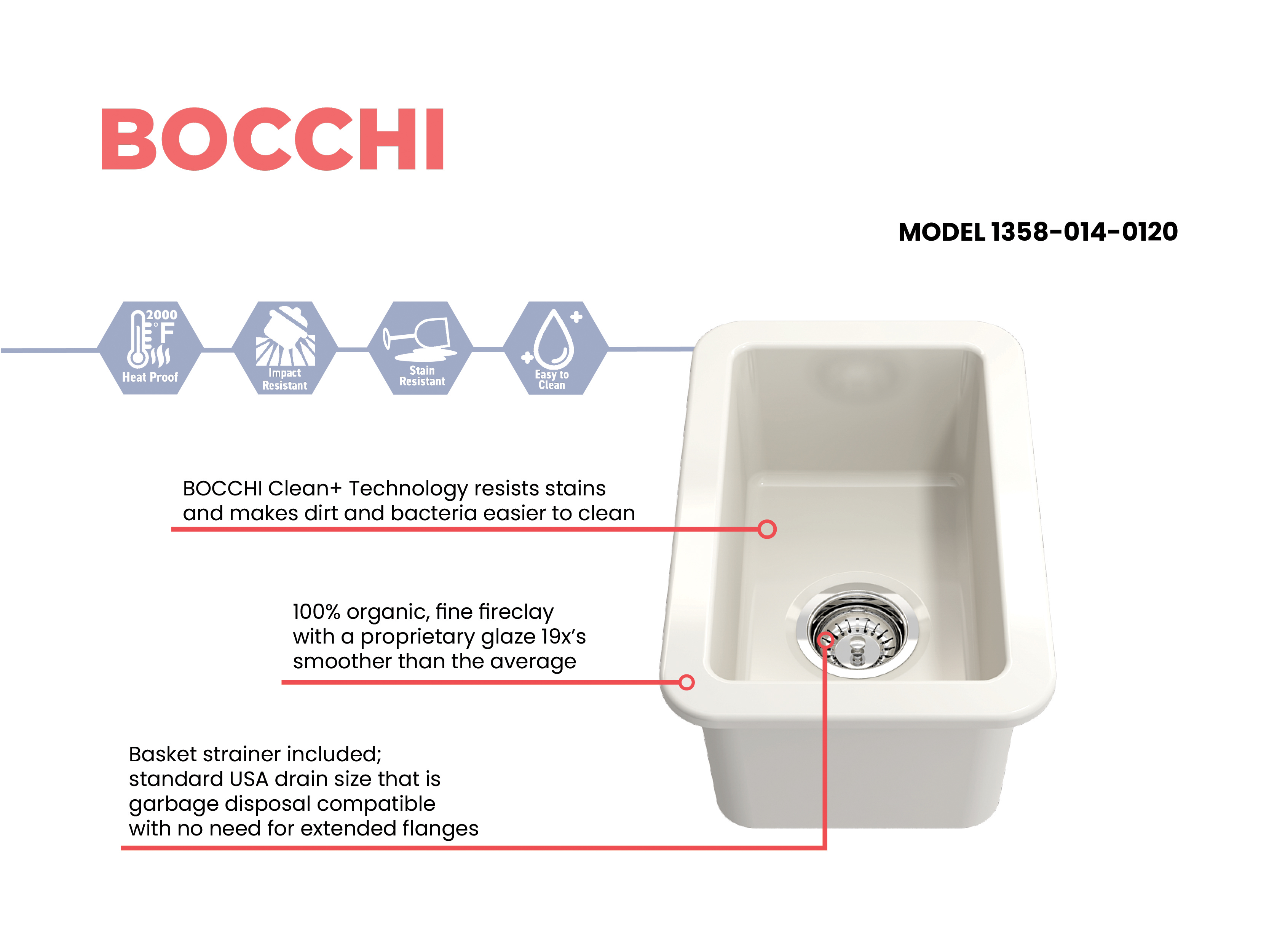 BOCCHI Sinks bring back the ultimate material to your kitchen. Fireclay, a 100% natural organic and recyclable material used by craftsman for centuries to create timeless appliances has now returned to your kitchen. With the firing in our kilns up to 2000°F temperatures, Fireclay becomes the most durable material used in today's kitchens. Thus, dealing with extreme heat coming from pots and pans is definitely not a problem. Due to their special glaze coating fused with the fireclay body, our sinks have a non-porous, uniform, scratch and stain resistant surface. With its distinctive looks, BOCCHI Sinks are truly crafted to match your design and functional desires.