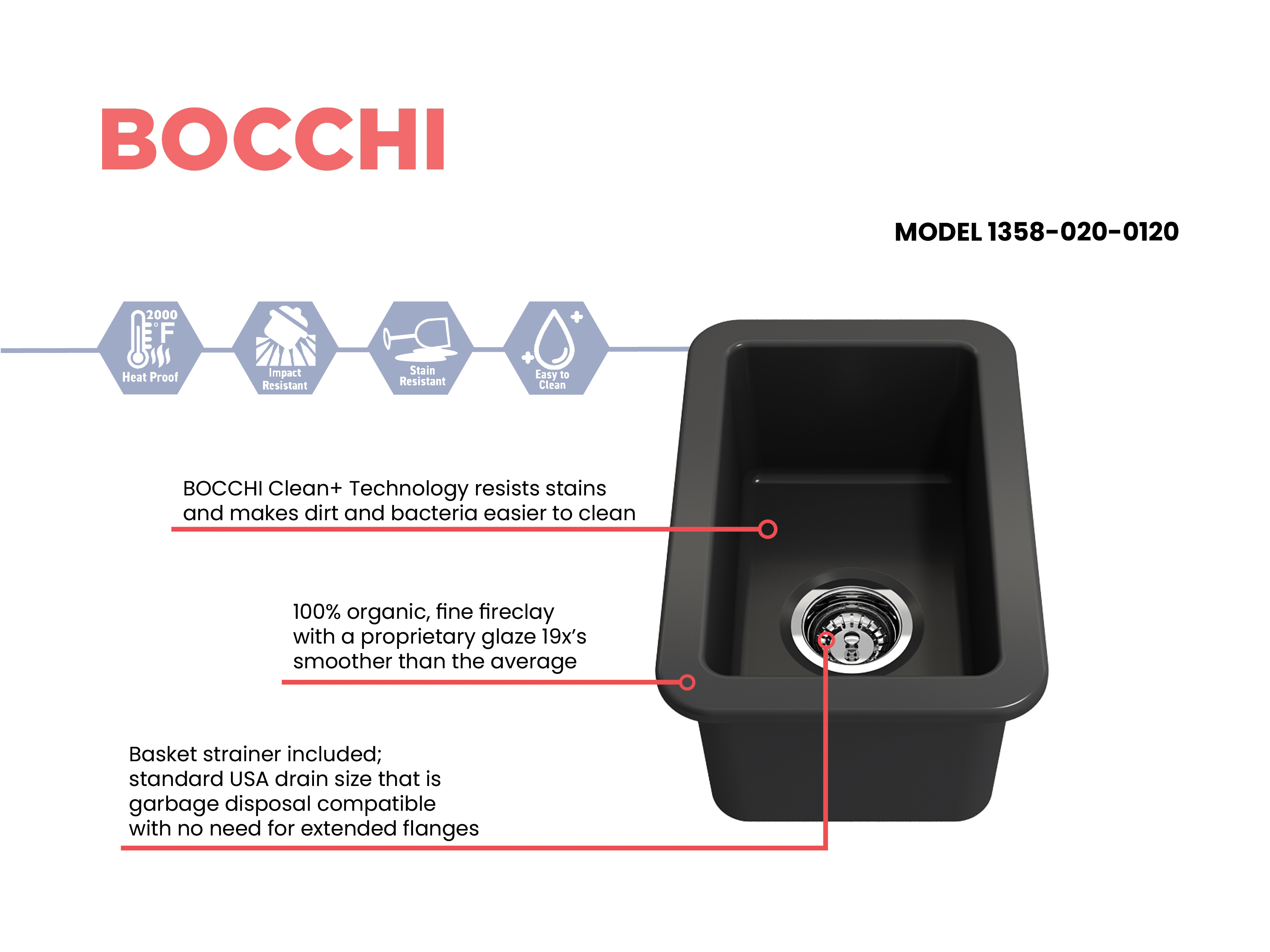 BOCCHI Sinks bring back the ultimate material to your kitchen. Fireclay, a 100% natural organic and recyclable material used by craftsman for centuries to create timeless appliances has now returned to your kitchen. With the firing in our kilns up to 2000°F temperatures, Fireclay becomes the most durable material used in today's kitchens. Thus, dealing with extreme heat coming from pots and pans is definitely not a problem. Due to their special glaze coating fused with the fireclay body, our sinks have a non-porous, uniform, scratch and stain resistant surface. With its distinctive looks, BOCCHI Sinks are truly crafted to match your design and functional desires.