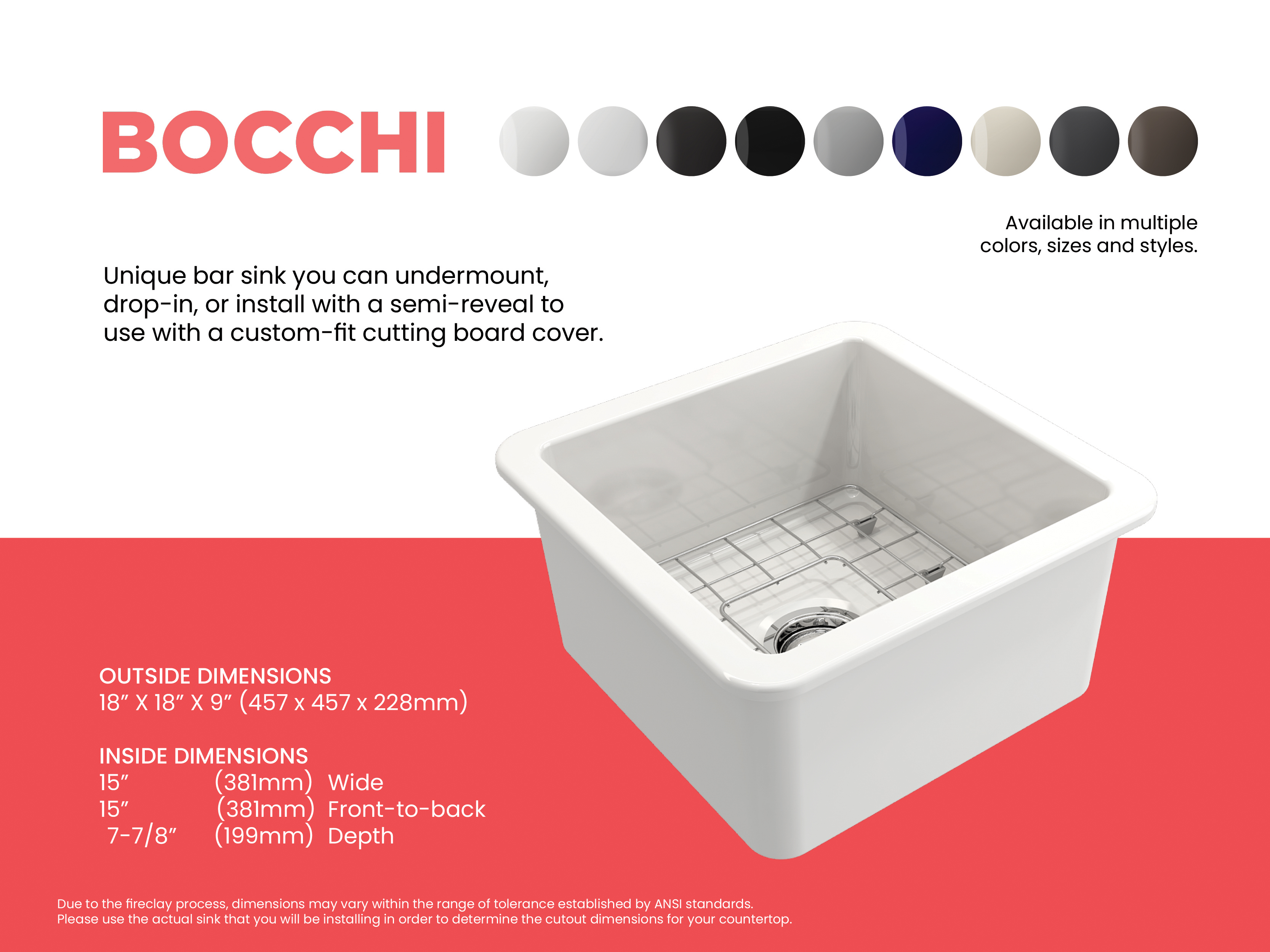 BOCCHI Sinks bring back the ultimate material to your kitchen. Fireclay, a 100% natural organic and recyclable material used by craftsman for centuries to create timeless appliances has now returned to your kitchen. With the firing in our kilns up to 2000°F temperatures, Fireclay becomes the most durable material used in today's kitchens. Thus, dealing with extreme heat coming from pots and pans is definitely not a problem. Due to their special glaze coating fused with the fireclay body, our sinks have a non-porous, uniform, scratch and stain resistant surface. With its protective bottom grid and distinctive looks, BOCCHI Sinks are truly crafted to match your design and functional desires.