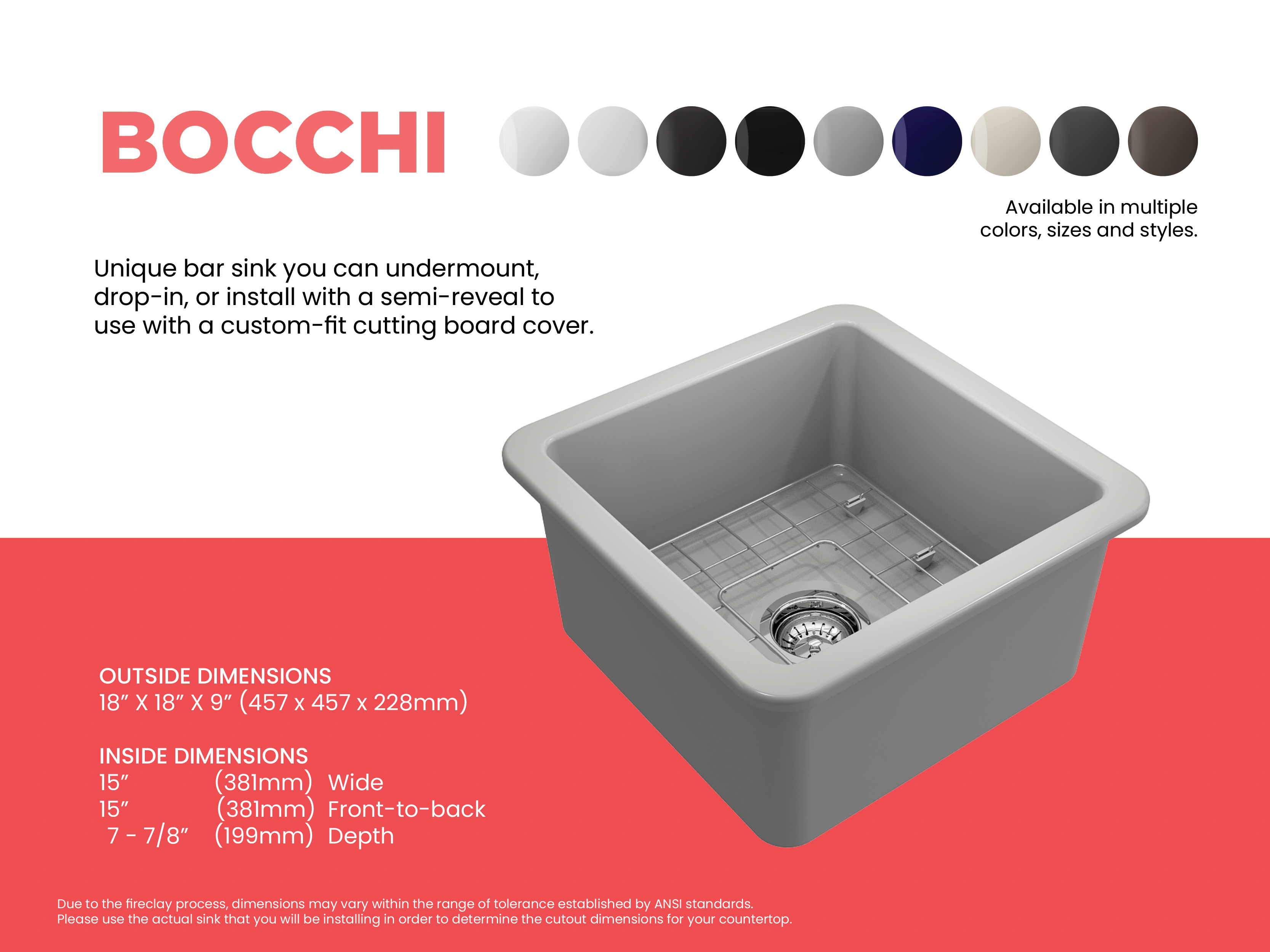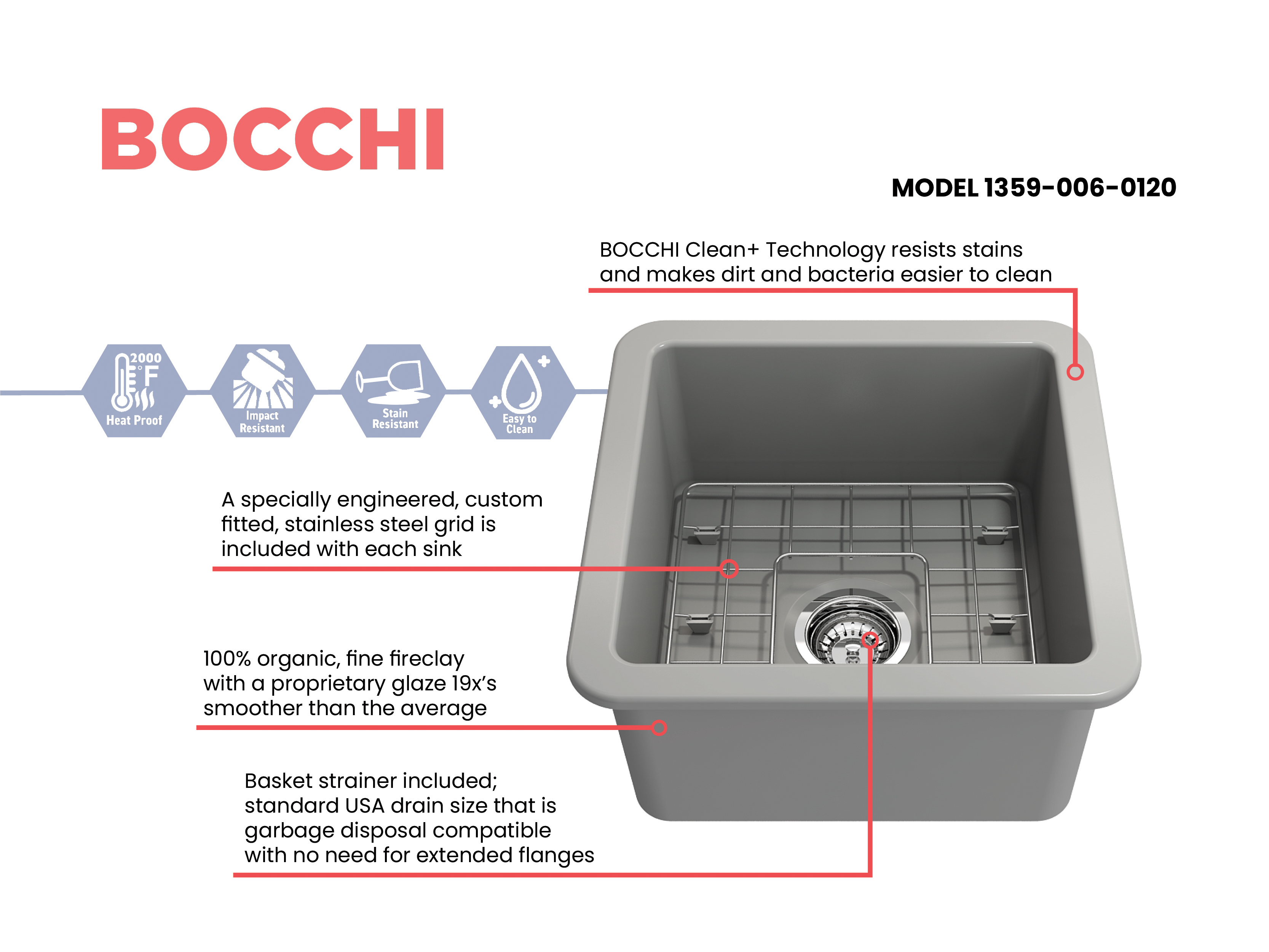 BOCCHI Sinks bring back the ultimate material to your kitchen. Fireclay, a 100% natural organic and recyclable material used by craftsman for centuries to create timeless appliances has now returned to your kitchen. With the firing in our kilns up to 2000°F temperatures, Fireclay becomes the most durable material used in today's kitchens. Thus, dealing with extreme heat coming from pots and pans is definitely not a problem. Due to their special glaze coating fused with the fireclay body, our sinks have a non-porous, uniform, scratch and stain resistant surface. With its protective bottom grid and distinctive looks, BOCCHI Sinks are truly crafted to match your design and functional desires.