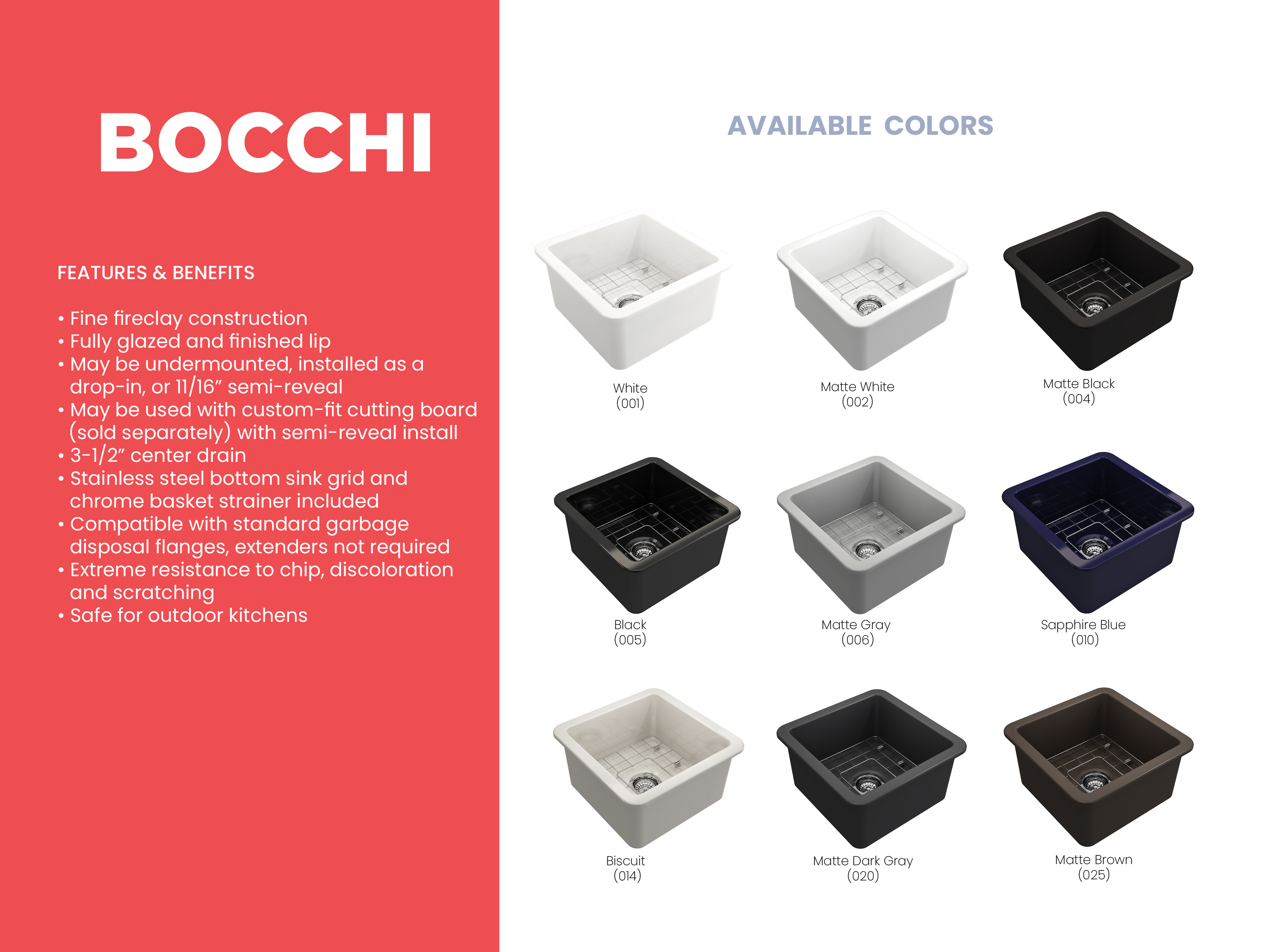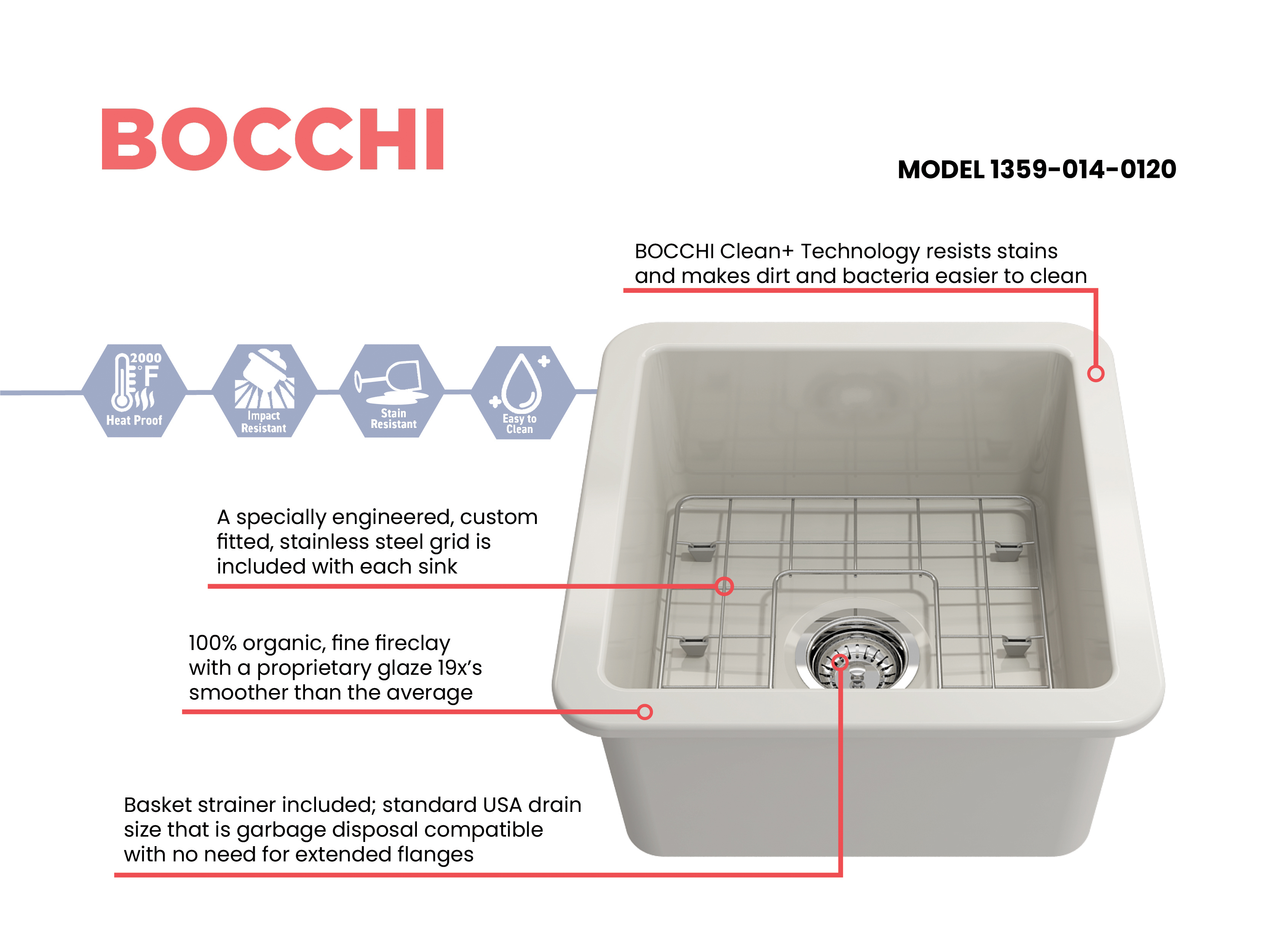 BOCCHI Sinks bring back the ultimate material to your kitchen. Fireclay, a 100% natural organic and recyclable material used by craftsman for centuries to create timeless appliances has now returned to your kitchen. With the firing in our kilns up to 2000°F temperatures, Fireclay becomes the most durable material used in today's kitchens. Thus, dealing with extreme heat coming from pots and pans is definitely not a problem. Due to their special glaze coating fused with the fireclay body, our sinks have a non-porous, uniform, scratch and stain resistant surface. With its protective bottom grid and distinctive looks, BOCCHI Sinks are truly crafted to match your design and functional desires.