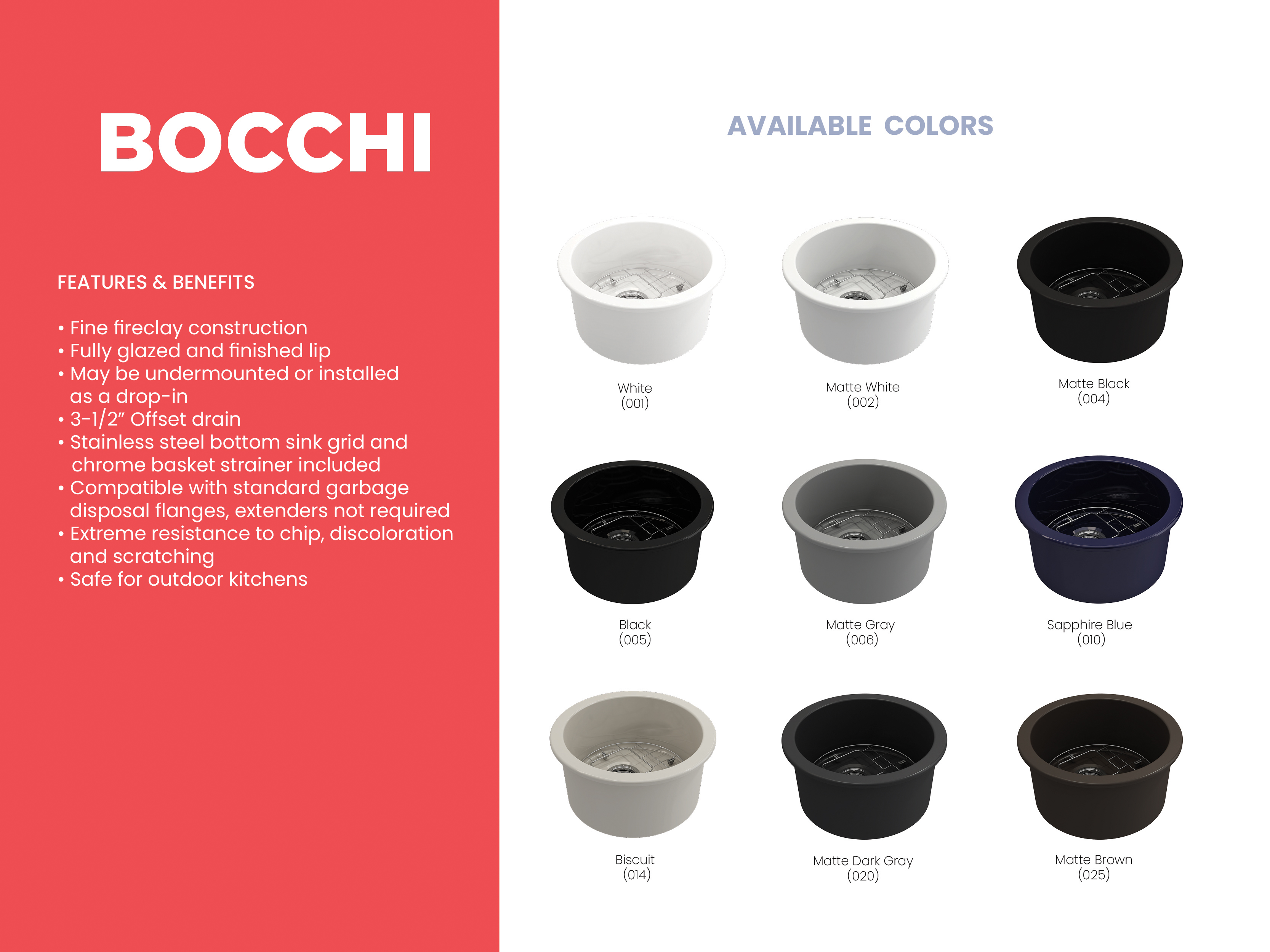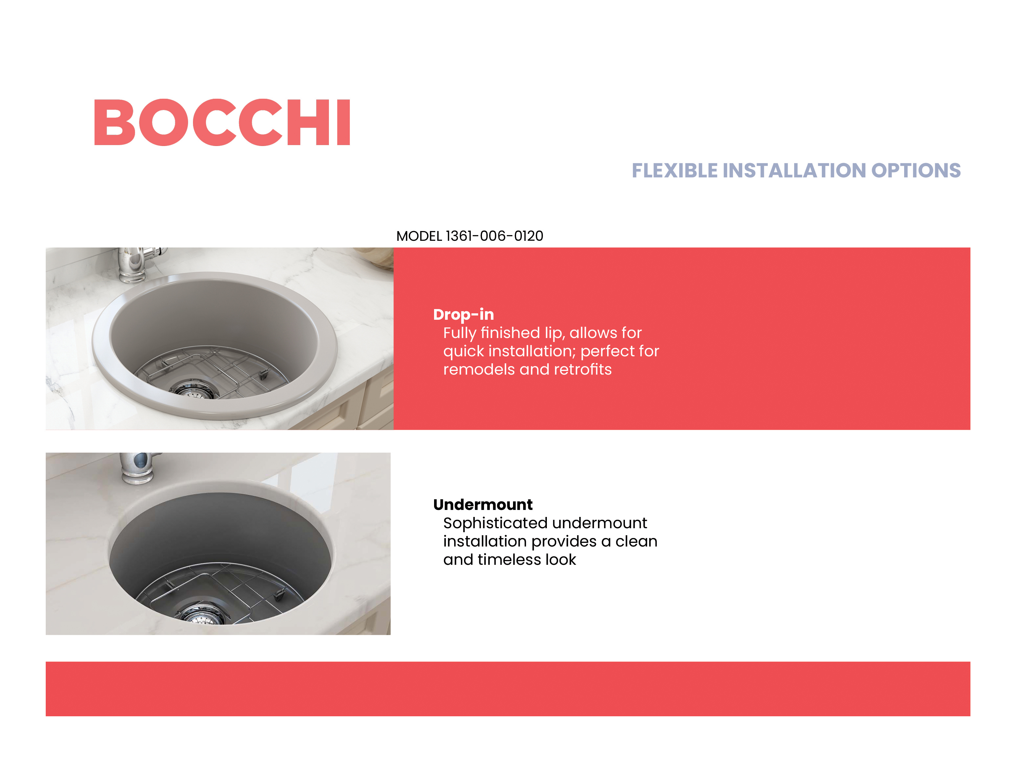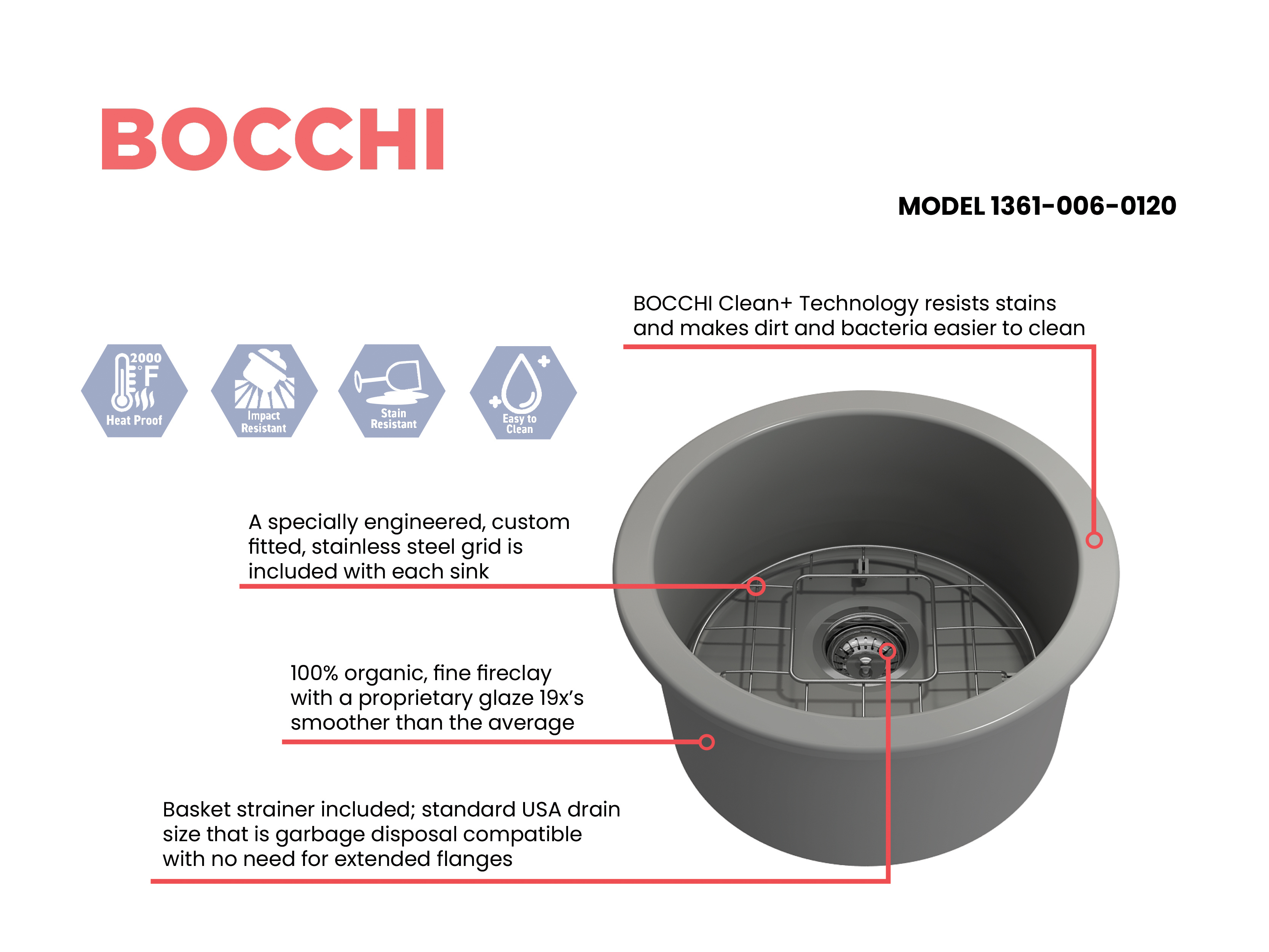 BOCCHI Sinks bring back the ultimate material to your kitchen. Fireclay, a 100% natural organic and recyclable material used by craftsman for centuries to create timeless appliances has now returned to your kitchen. With the firing in our kilns up to 2000°F temperatures, Fireclay becomes the most durable material used in today's kitchens. Thus, dealing with extreme heat coming from pots and pans is definitely not a problem. Due to their special glaze coating fused with the fireclay body, our sinks have a non-porous, uniform, scratch and stain resistant surface. With its protective bottom grid and distinctive looks, BOCCHI Sinks are truly crafted to match your design and functional desires.