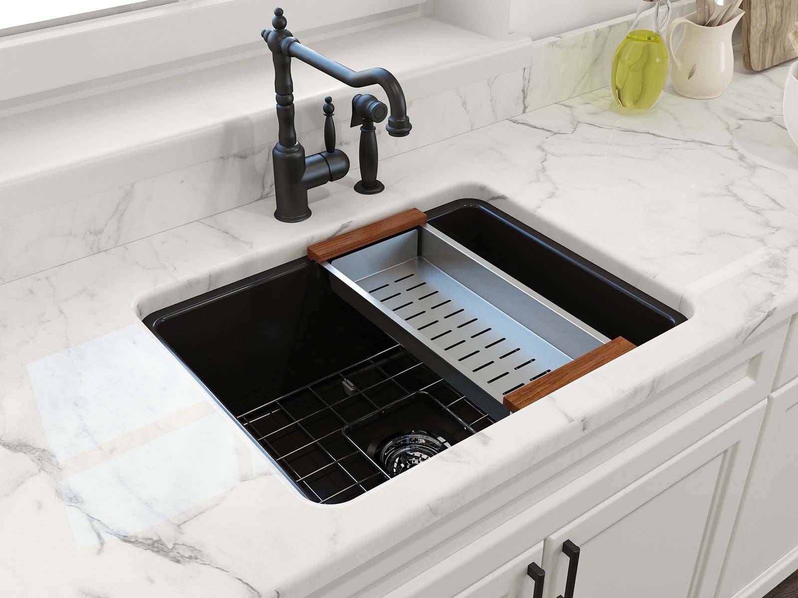 BOCCHI Sinks bring back the ultimate material to your kitchen. Fireclay, a 100% natural organic and recyclable material used by craftsman for centuries to create timeless appliances has now returned to your kitchen. With the firing in our kilns up to 2000°F temperatures, Fireclay becomes the most durable material used in today's kitchens. Thus, dealing with extreme heat coming from pots and pans is definitely not a problem. Due to their special glaze coating fused with the fireclay body, our sinks have a non-porous, uniform, scratch and stain resistant surface. With its protective bottom grid and distinctive looks, BOCCHI Sinks are truly crafted to match your design and functional desires.