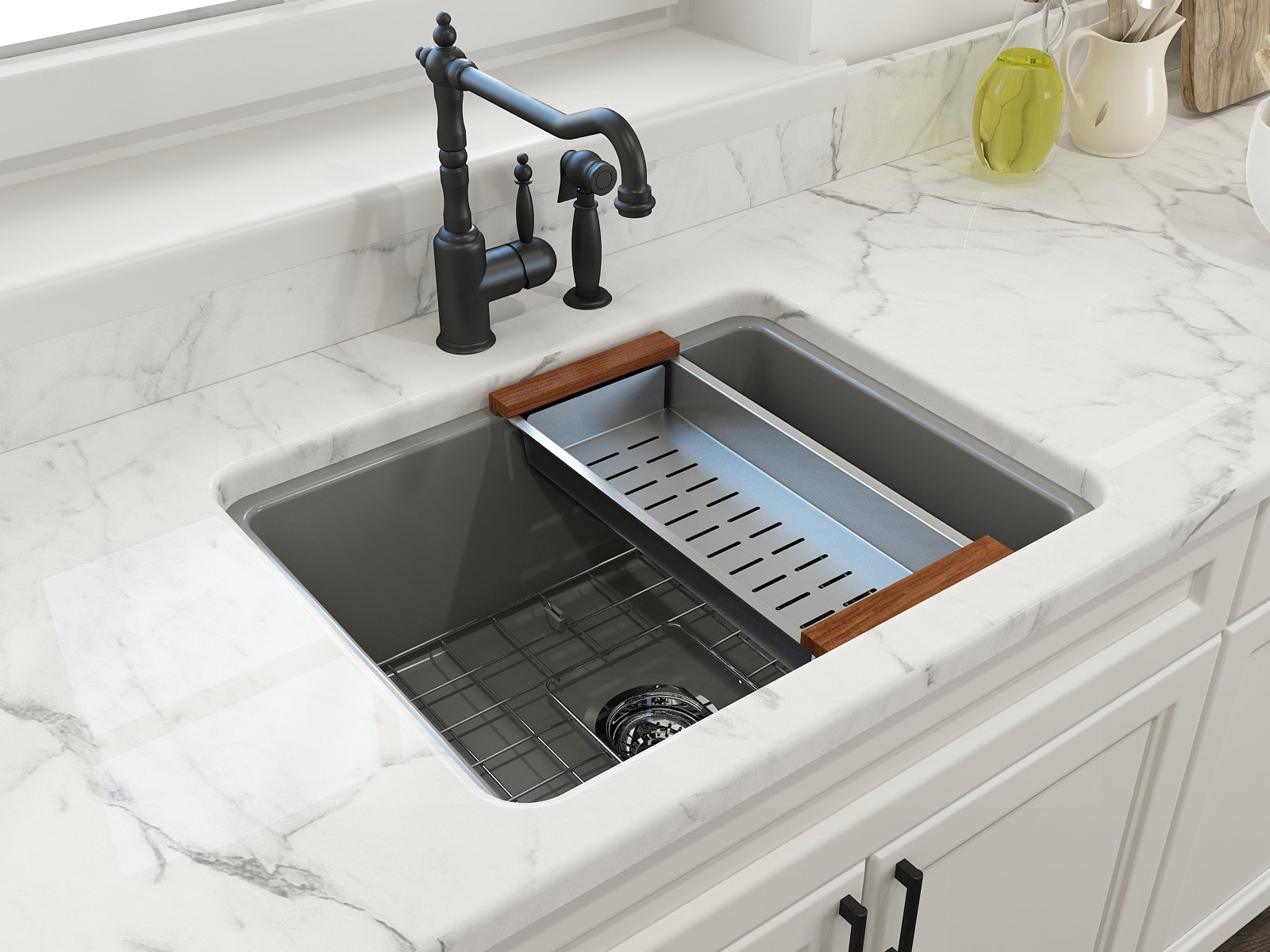 BOCCHI Sinks bring back the ultimate material to your kitchen. Fireclay, a 100% natural organic and recyclable material used by craftsman for centuries to create timeless appliances has now returned to your kitchen. With the firing in our kilns up to 2000°F temperatures, Fireclay becomes the most durable material used in today's kitchens. Thus, dealing with extreme heat coming from pots and pans is definitely not a problem. Due to their special glaze coating fused with the fireclay body, our sinks have a non-porous, uniform, scratch and stain resistant surface. With its protective bottom grid and distinctive looks, BOCCHI Sinks are truly crafted to match your design and functional desires.