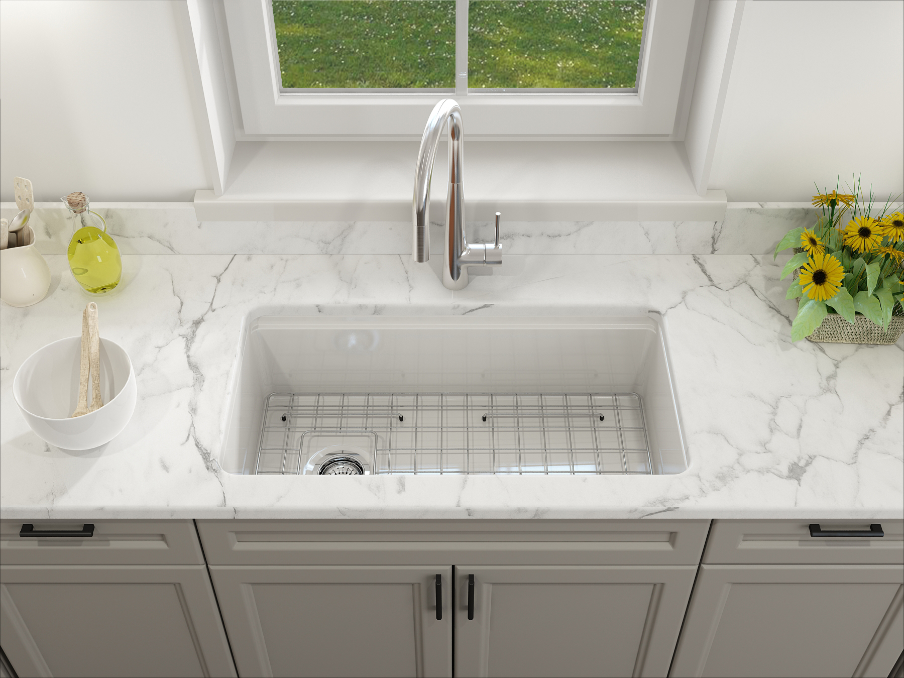 BOCCHI Sinks bring back the ultimate material to your kitchen. Fireclay, a 100% natural organic and recyclable material used by craftsman for centuries to create timeless appliances has now returned to your kitchen. With the firing in our kilns up to 2000°F temperatures, Fireclay becomes the most durable material used in today's kitchens. Thus, dealing with extreme heat coming from pots and pans is definitely not a problem. Due to their special glaze coating fused with the fireclay body, our sinks have a non-porous, uniform, scratch and stain resistant surface. With its protective bottom grid and distinctive looks, BOCCHI Sinks are truly crafted to match your design and functional desires.