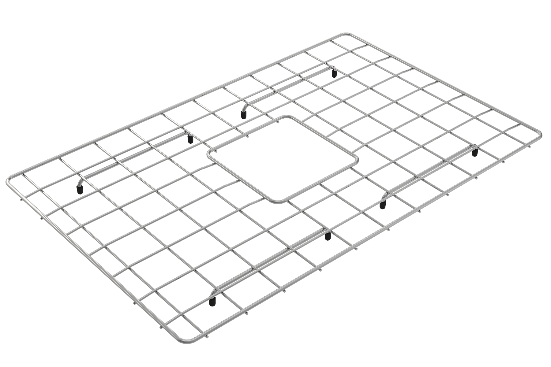 BOCCHI stainless steel wire Sink Grid designed to fit our fireclay kitchen sink models: Sotto 24 (1627-XXX-0120). Offers a stable base for dishes while keeping the base of the sink clear to allow for easy draining. Specially engineered spacing allows enough flexibility in the grid to absorb impact from dropped dishes to help prevent breakage. Features rubber feet that prevent scuff marks.