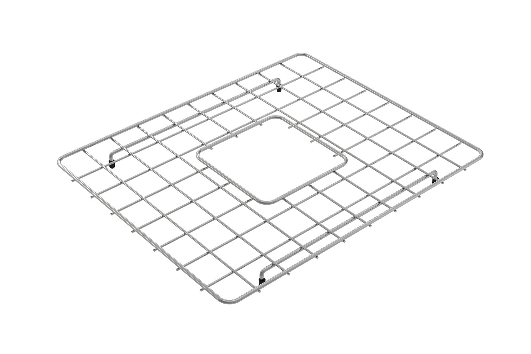 • BOCCHI stainless steel wire Sink Grid designed to fit our fireclay kitchen sink models: Sotto Step-Rim 34D (1694-XXX-0120) LARGE BASIN SIDE ONLY. Offers a stable base for dishes while keeping the base of the sink clear to allow for easy draining. Specially engineered spacing allows enough flexibility in the grid to absorb impact from dropped dishes to help prevent breakage. Features rubber feet that prevent scuff marks.