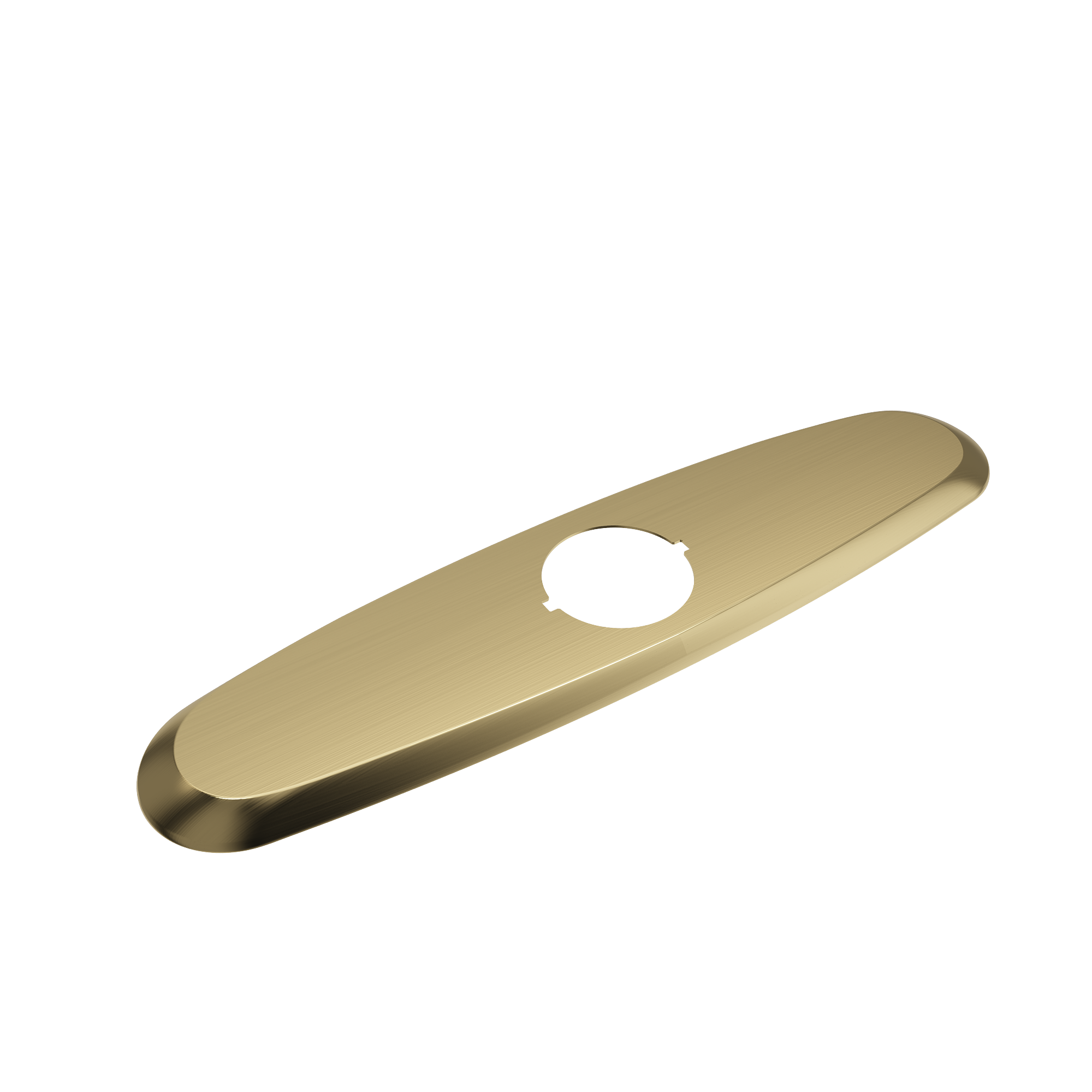 Brass deck plate (escutcheon) for single kitchen faucets. Features a universal design with a rounded, oval shape that compliments all faucet designs including traditional models.