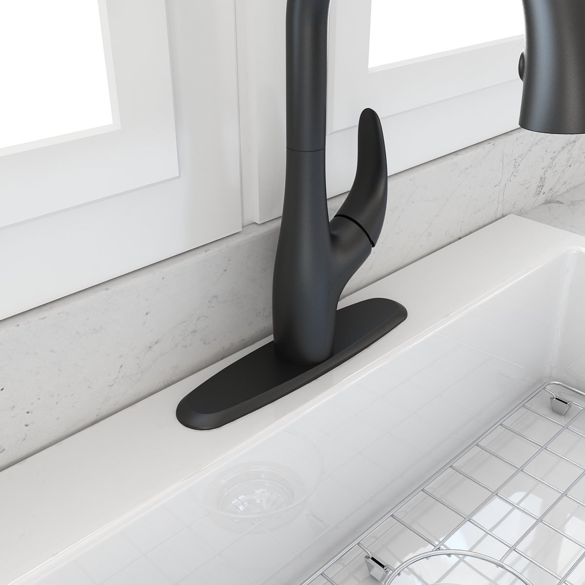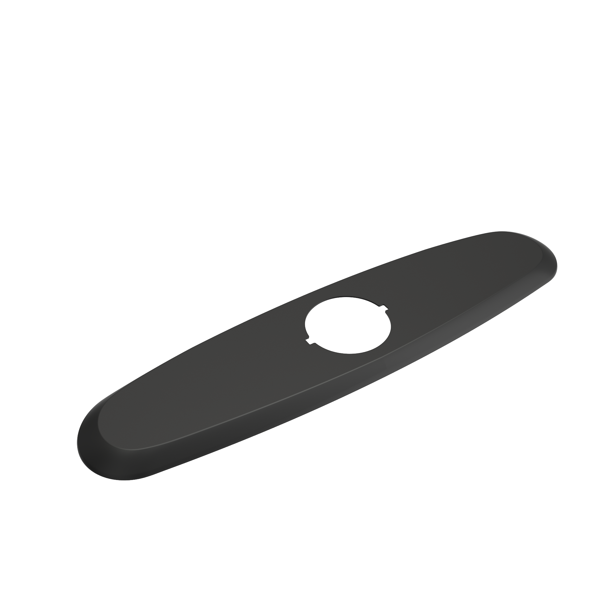 Brass deck plate (escutcheon) for single kitchen faucets. Features a universal design with a rounded, oval shape that compliments all faucet designs including traditional models.