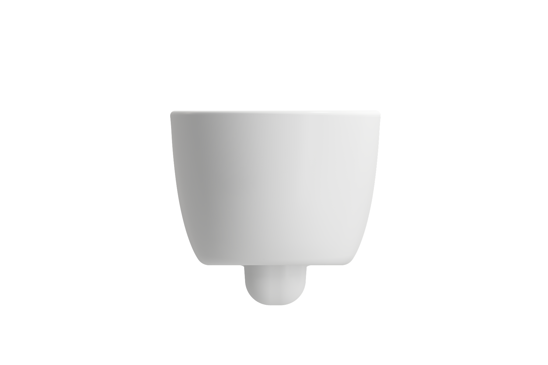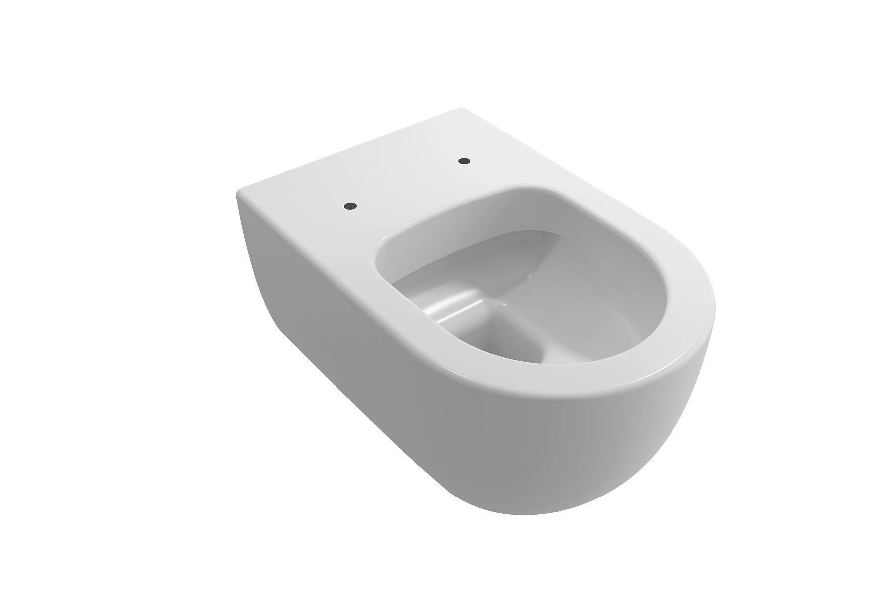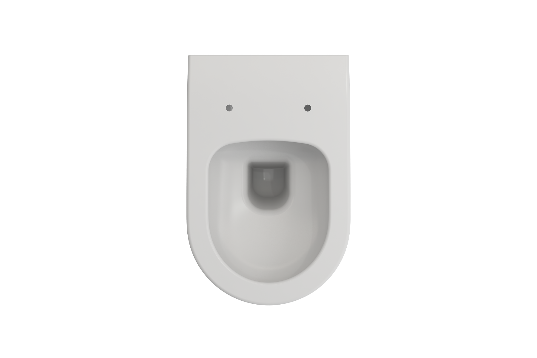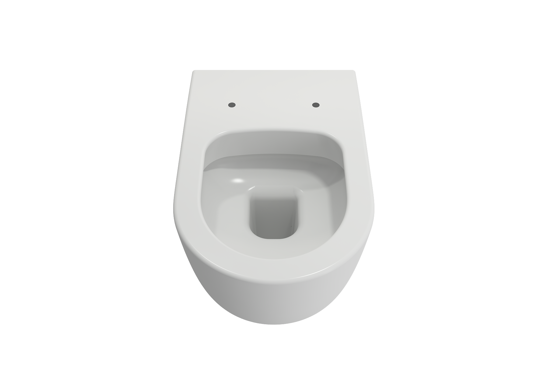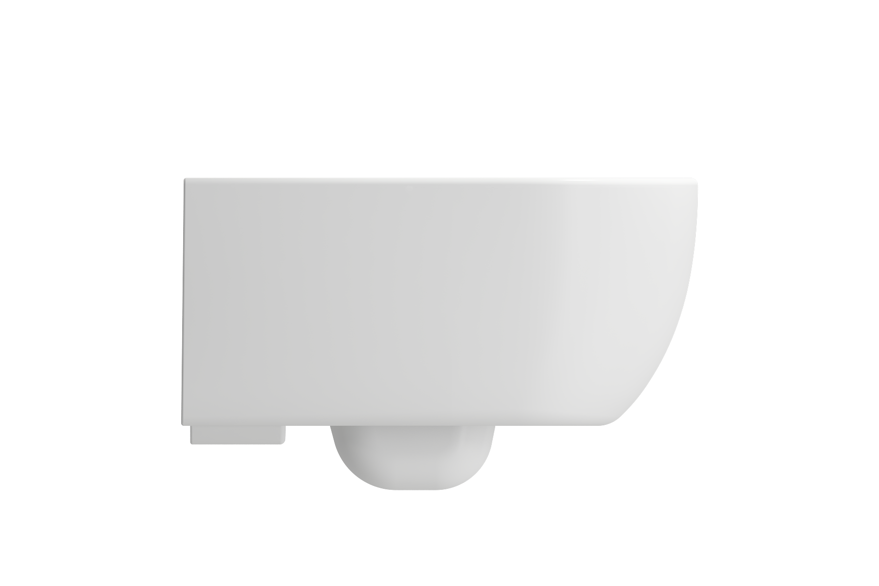 Wall-hung toilet bowl with wash-down flush and Euro-front design. Rimless vitreous china construction with color-matched soft close toilet seat (sold seperately). Compatible with in-wall tanks (sold seperately).