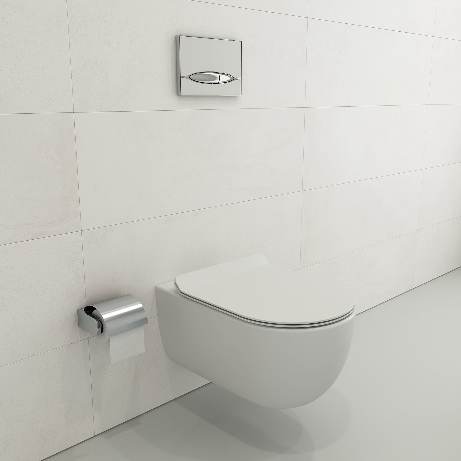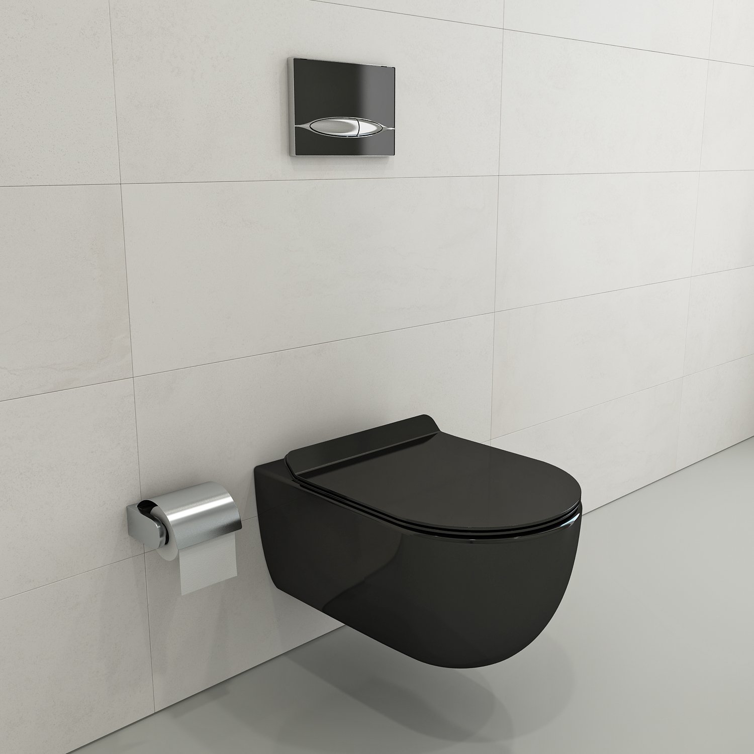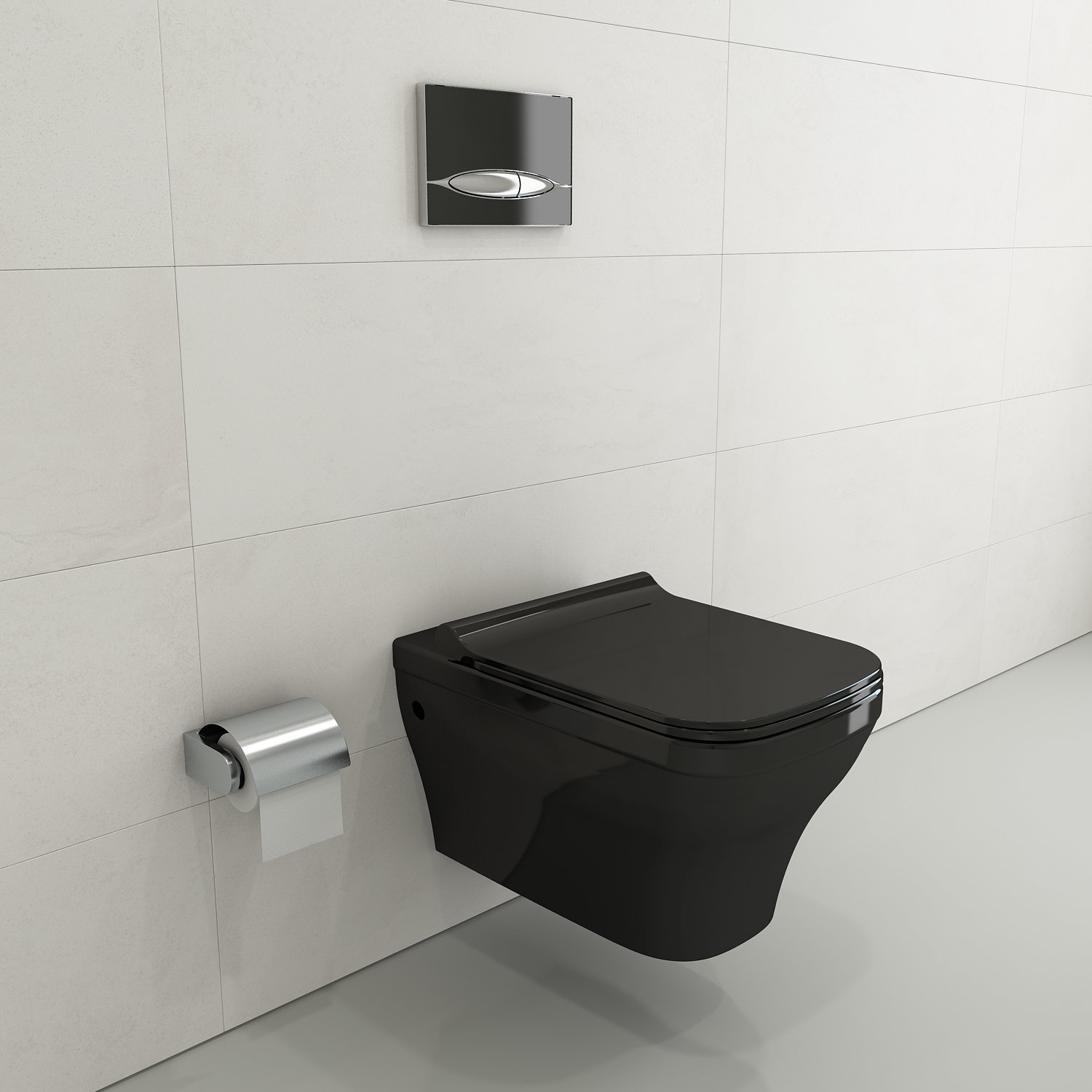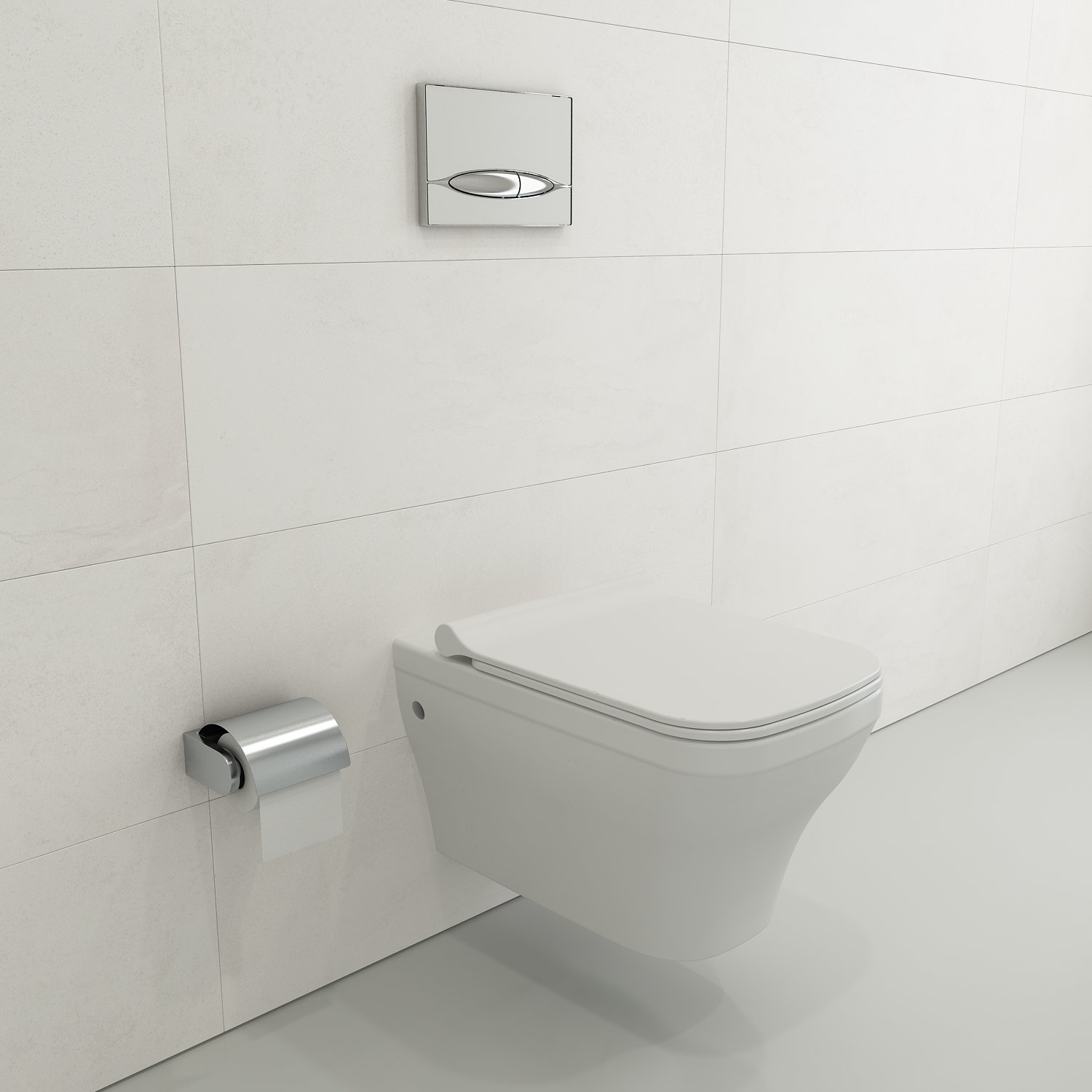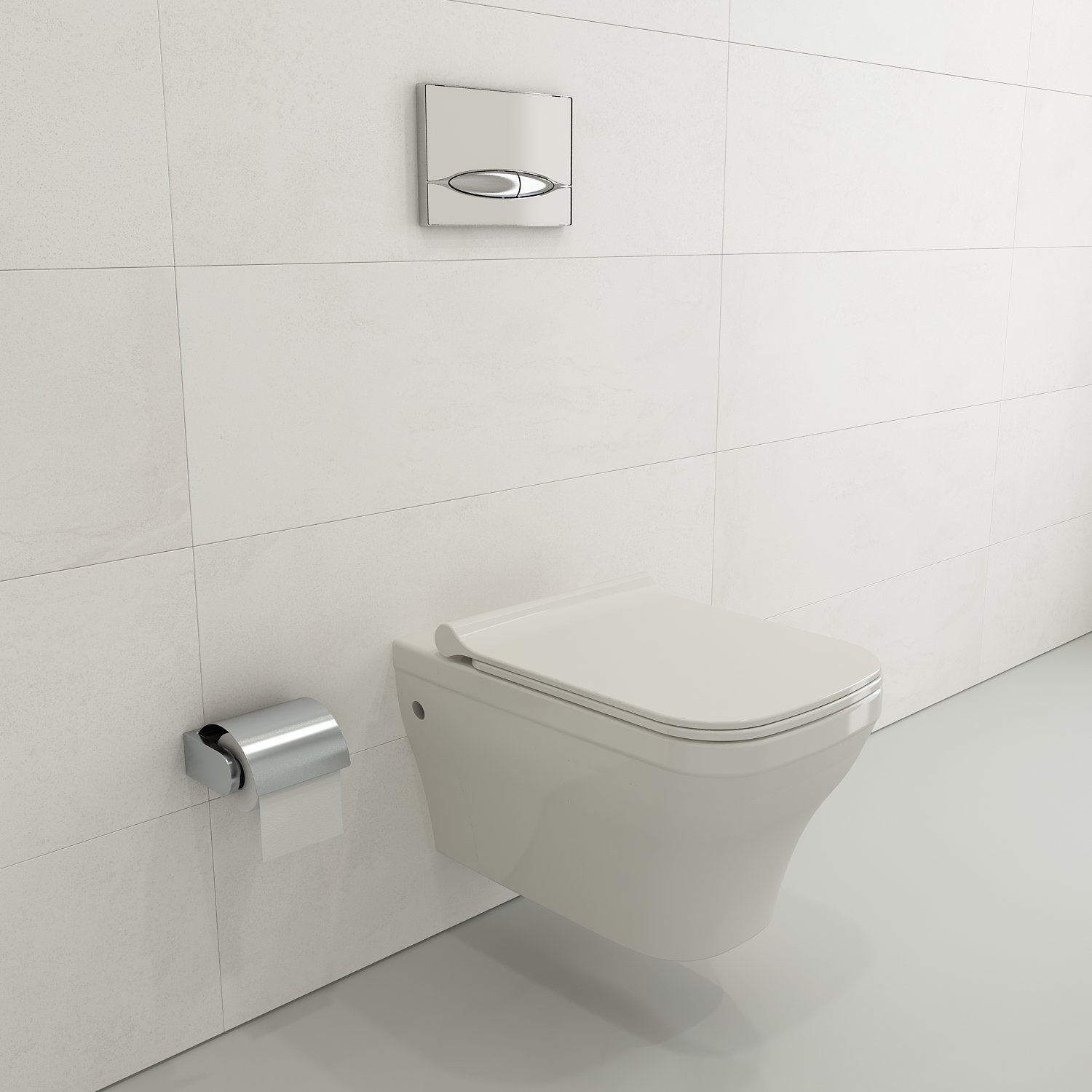 Wall-hung toilet bowl with wash-down flush and Euro-front design. Rimless vitreous china construction with color-matched soft close toilet seat (sold seperately). Compatible with in-wall tanks (sold seperately).