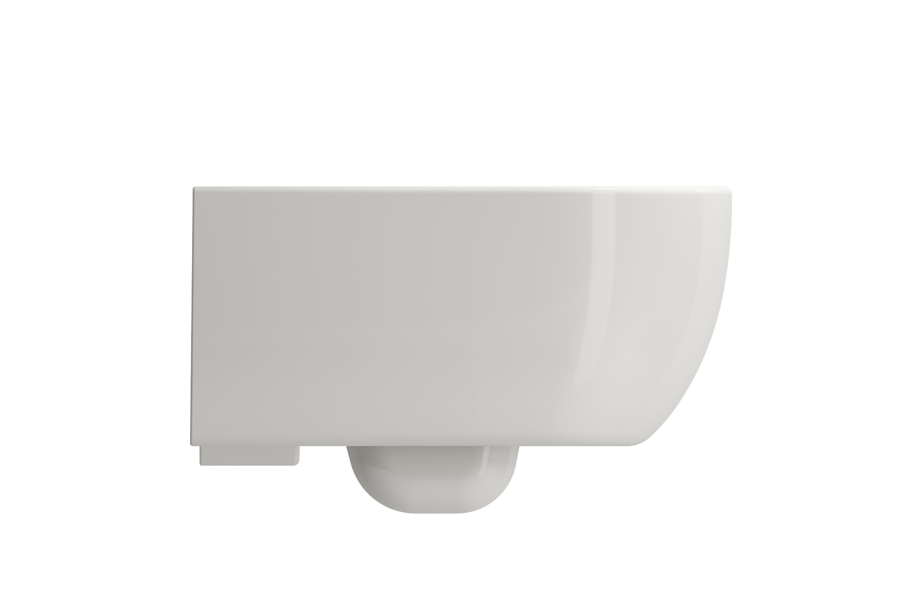 Wall-hung toilet bowl with wash-down flush and Euro-front design. Rimless vitreous china construction with color-matched soft close toilet seat (sold seperately). Compatible with in-wall tanks (sold seperately).Â